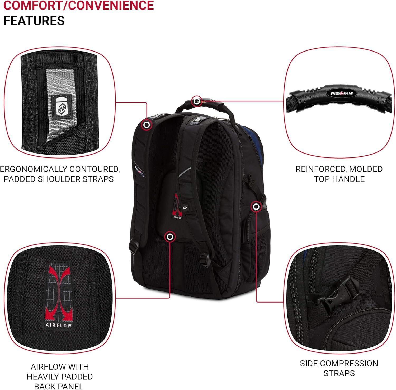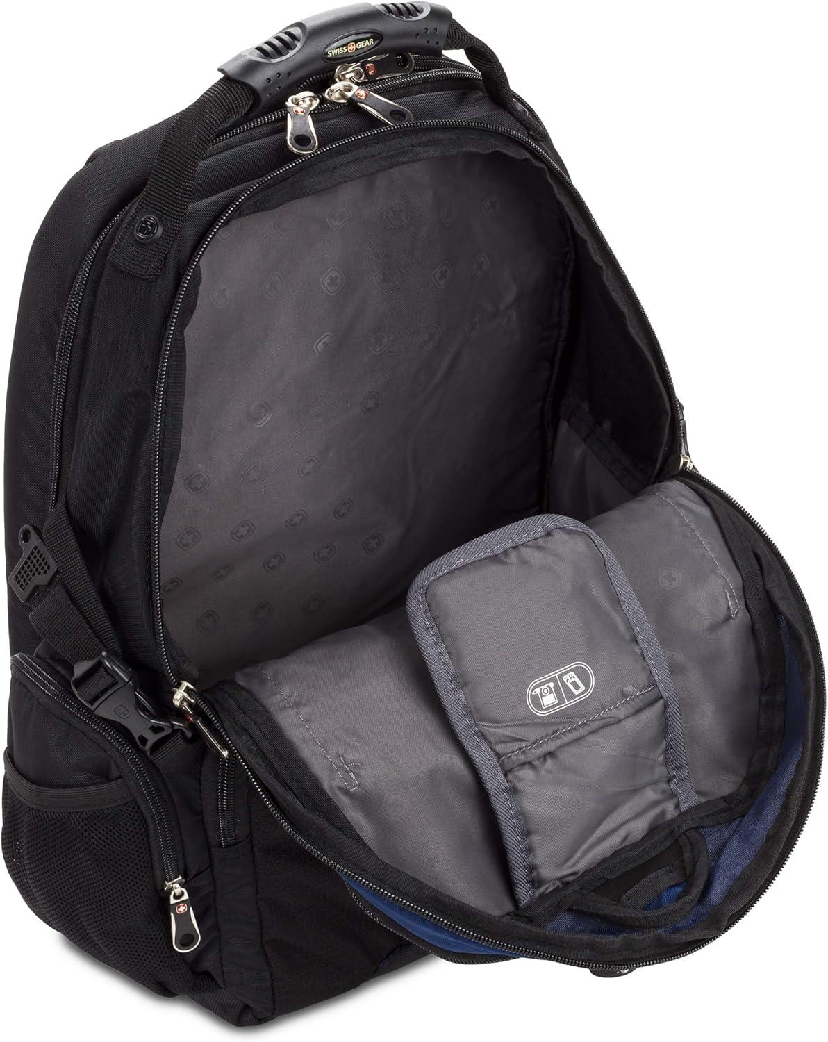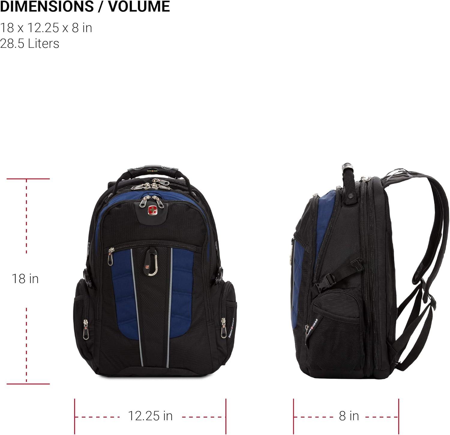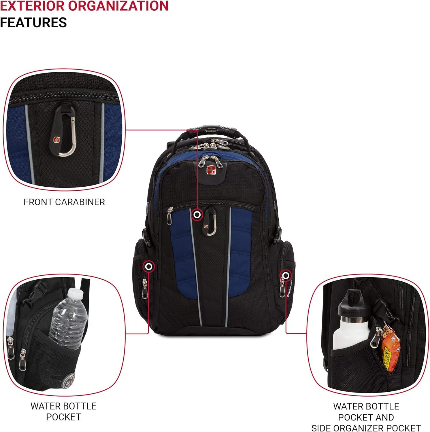 The versatile SwissGear 1753 ScanSmart Laptop Backpack is made for convenience and functionality. With ScanSmart technology, this backpack allowing you to speed through TSA checkpoints with your laptop nested safely in the case. The main pocket provides protected packing for larger items. Other features include a molded top handle, side water bottle pockets, a full-featured organizer compartment, a heavily padded back panel, and padded contour shaped shoulder straps with built-in suspension.