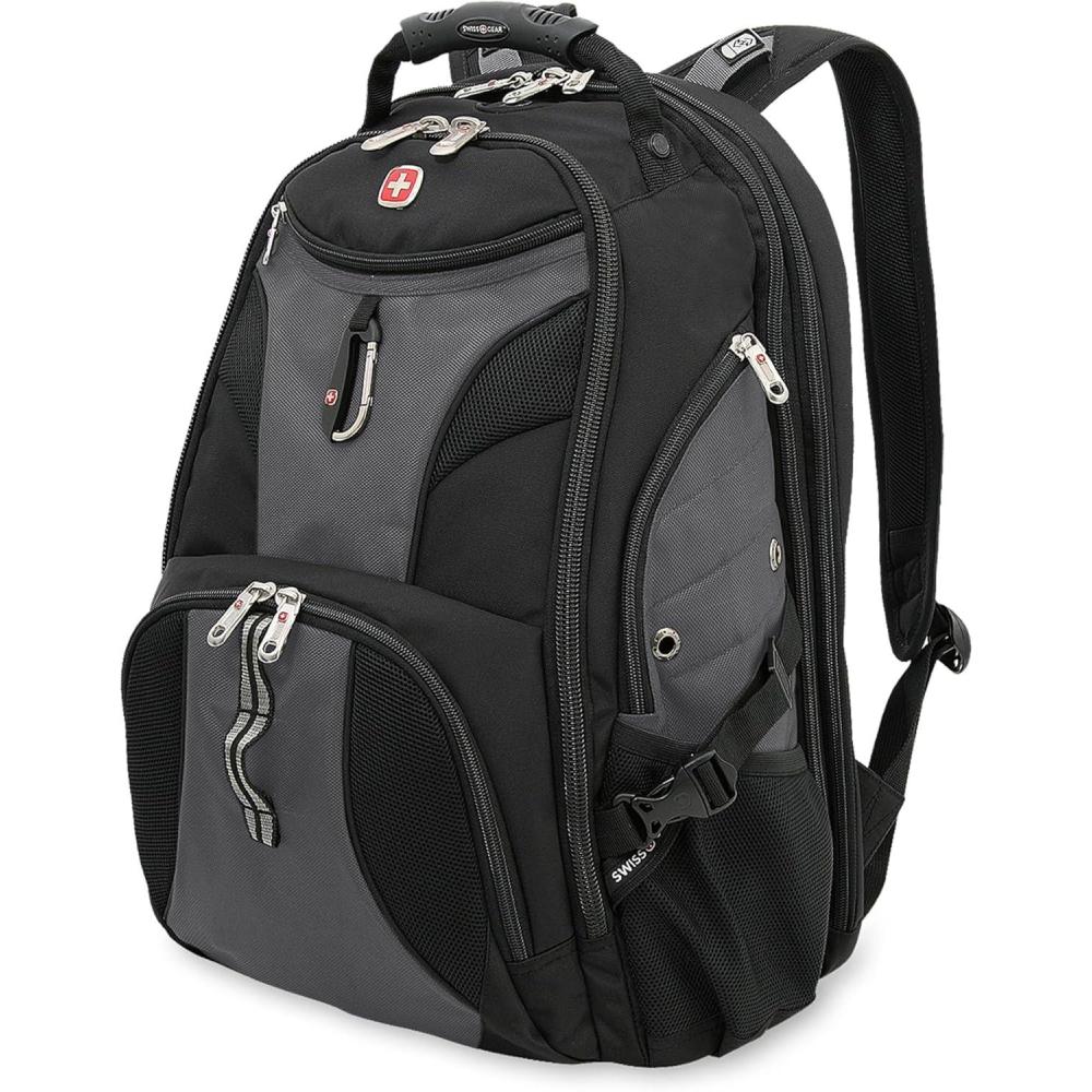 SwissGear 1900 ScanSmart 17” Laptop Backpack Grey/Black – Reflective Tech Backpack with ScanSmart Compartment – Multiple Organizer Pockets & RFID Scan Blocking Technology(Grey/Black)