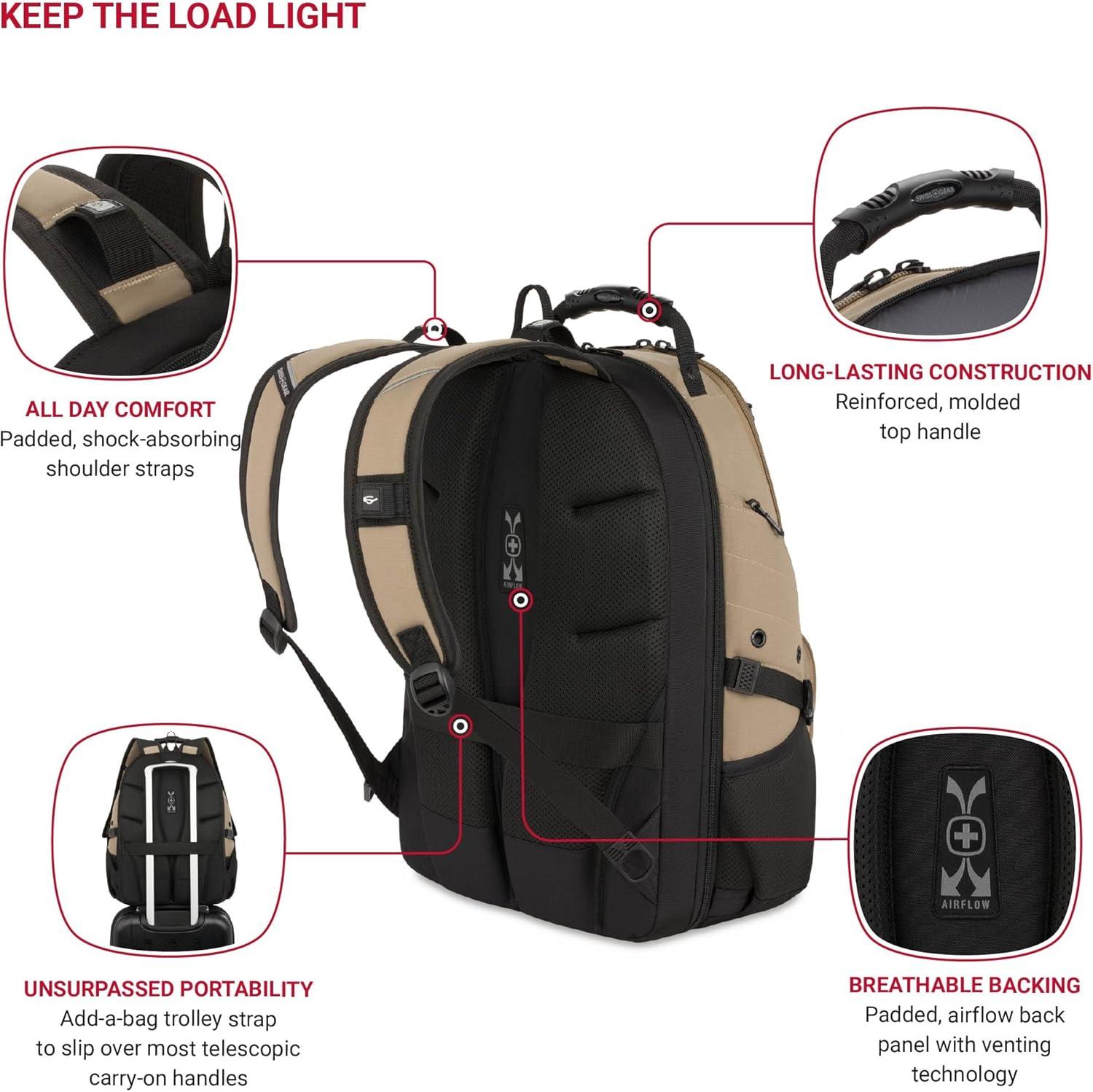 SwissGear 1900 ScanSmart 17” Laptop Backpack Grey/Black – Reflective Tech Backpack with ScanSmart Compartment – Multiple Organizer Pockets & RFID Scan Blocking Technology(Pastel Brown)