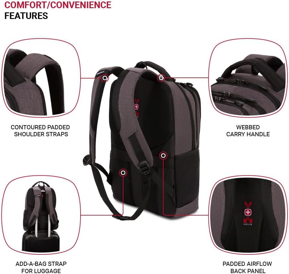 Add-a-Bag Strap: A must-have travel backpack for men and women, this Swiss Gear backpack includes an add-a-bag rear strap that fits over luggage extension handles for easy and convenient movement through airports
