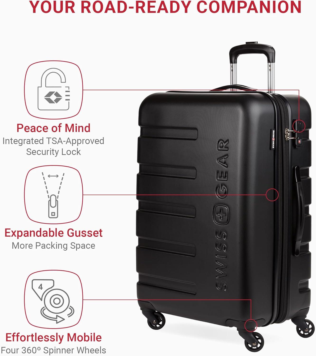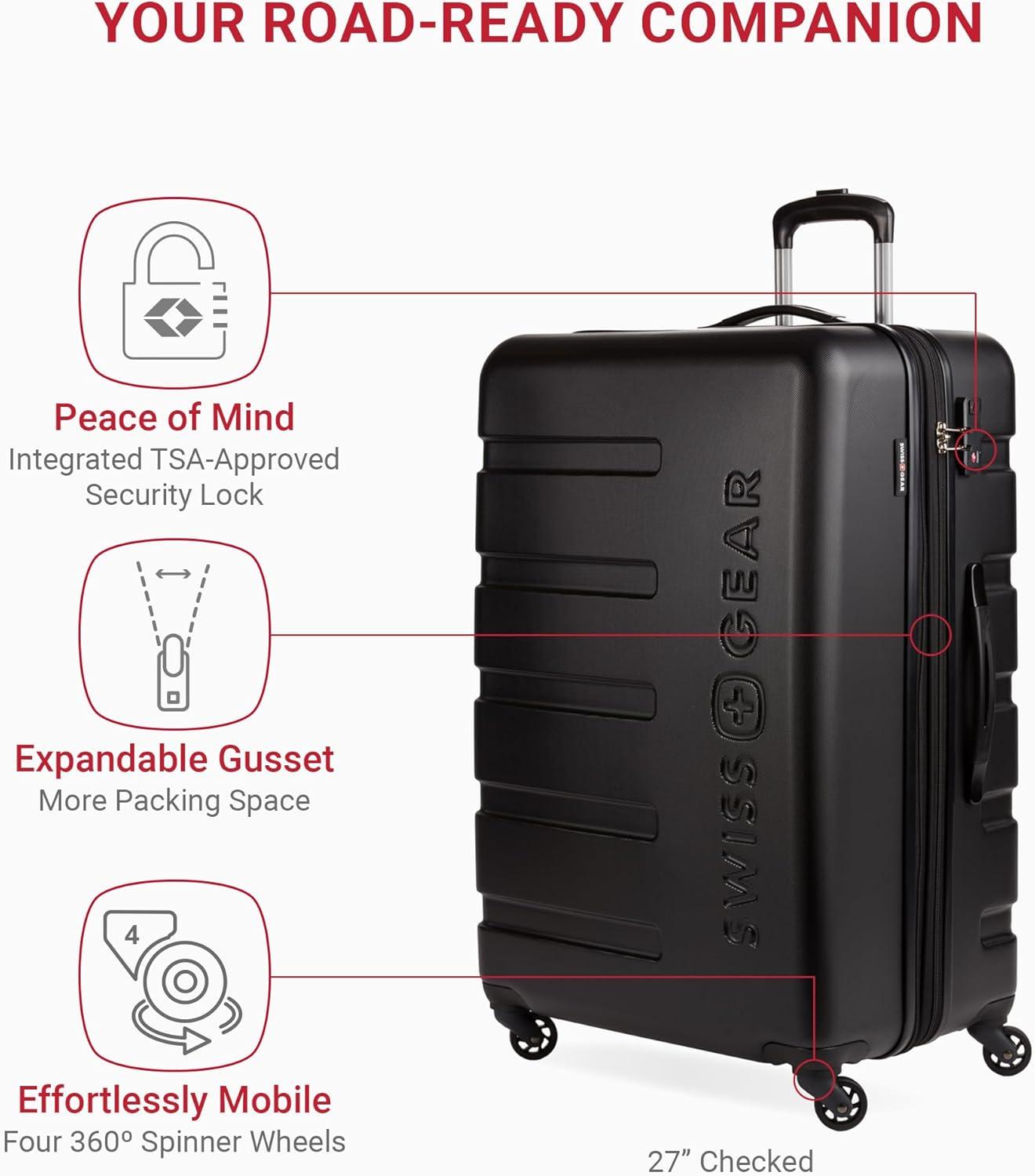 SwissGear 7366 Signature Hardside Expandable Luggage with Spinner Wheels, TSA Lock, Cup-Holder, Chocolate, 2-Piece Set (19/27)(Black)