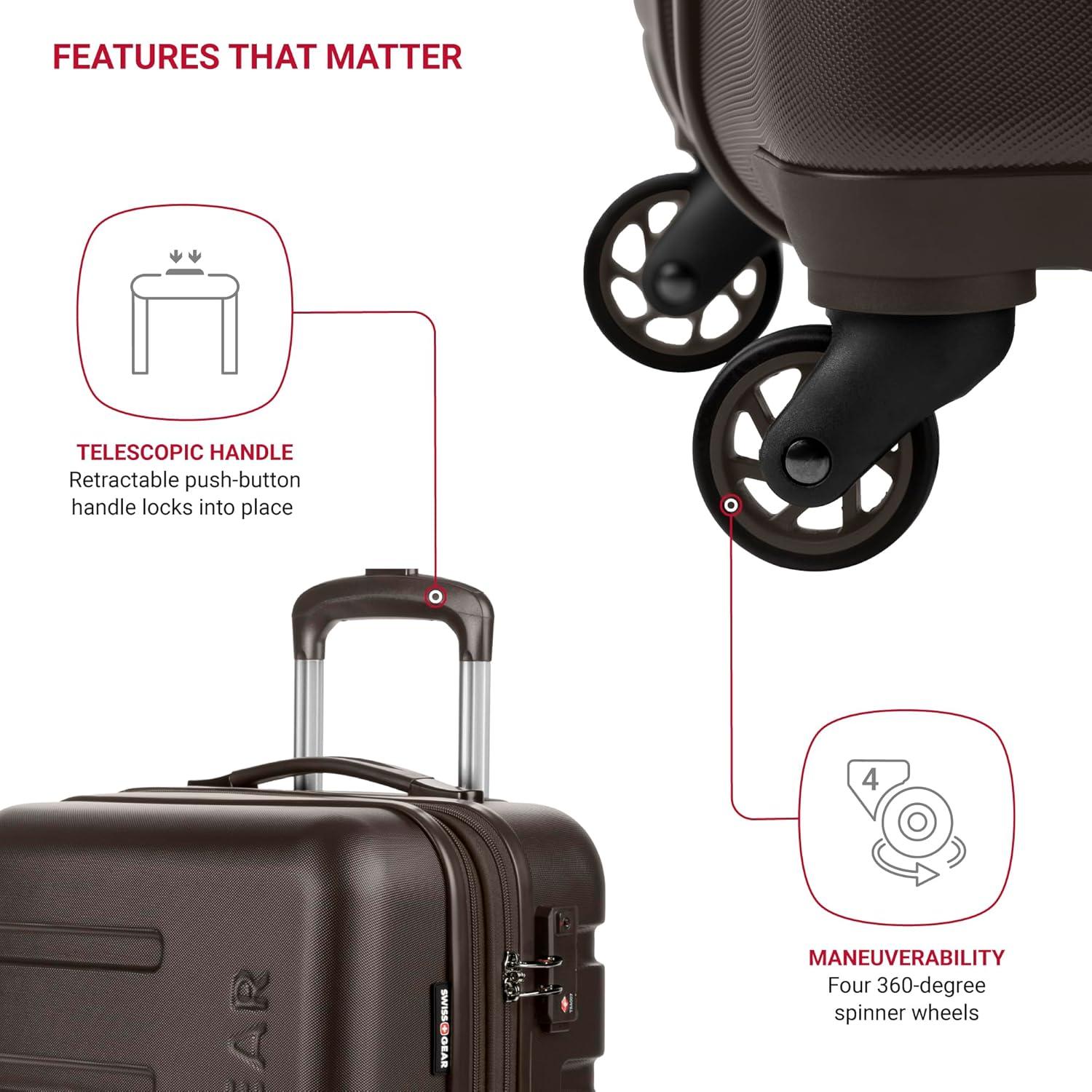 SwissGear 7366 Signature Hardside Expandable Luggage with Spinner Wheels, TSA Lock, Cup-Holder, Chocolate, 2-Piece Set (19/27)(Black)