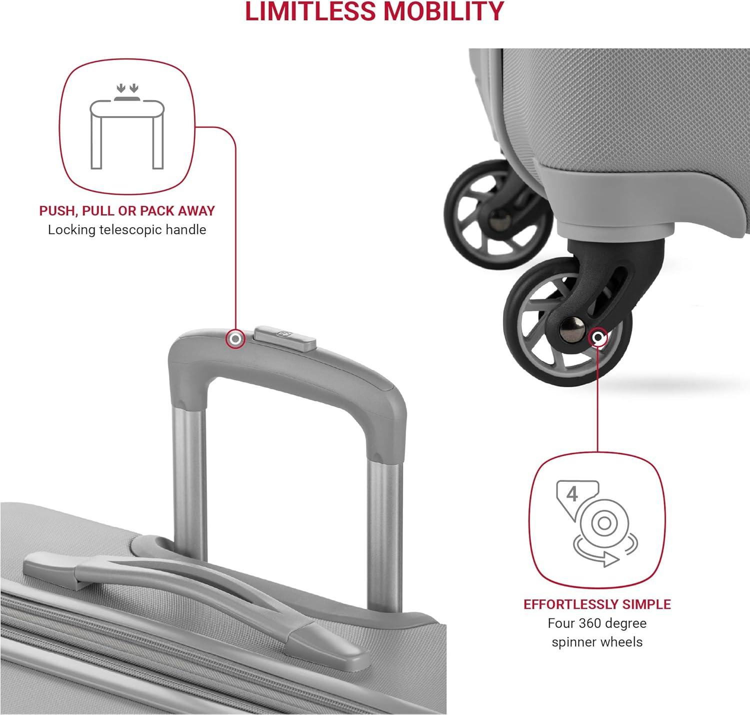 Four 360-Degree Multi-Directional Spinner Wheels: Built with maximum maneuverability in mind so you can navigate busy airports and small spaces with ease