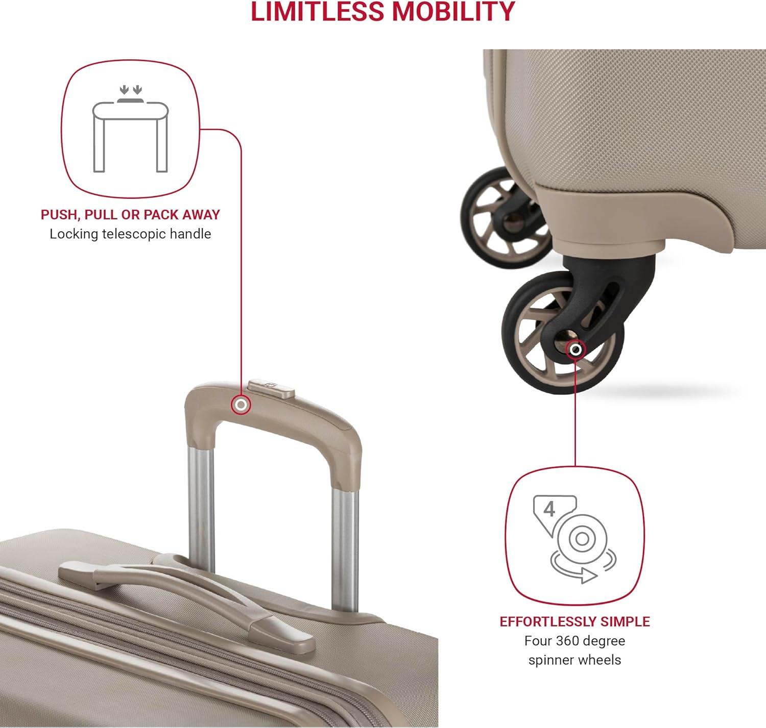Four 360-Degree Multi-Directional Spinner Wheels: Built with maximum maneuverability in mind so you can navigate busy airports and small spaces with ease