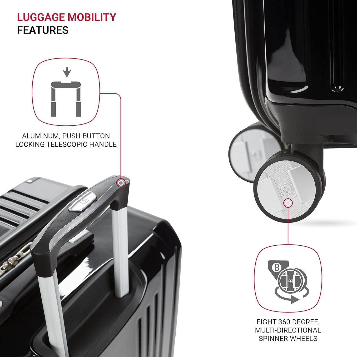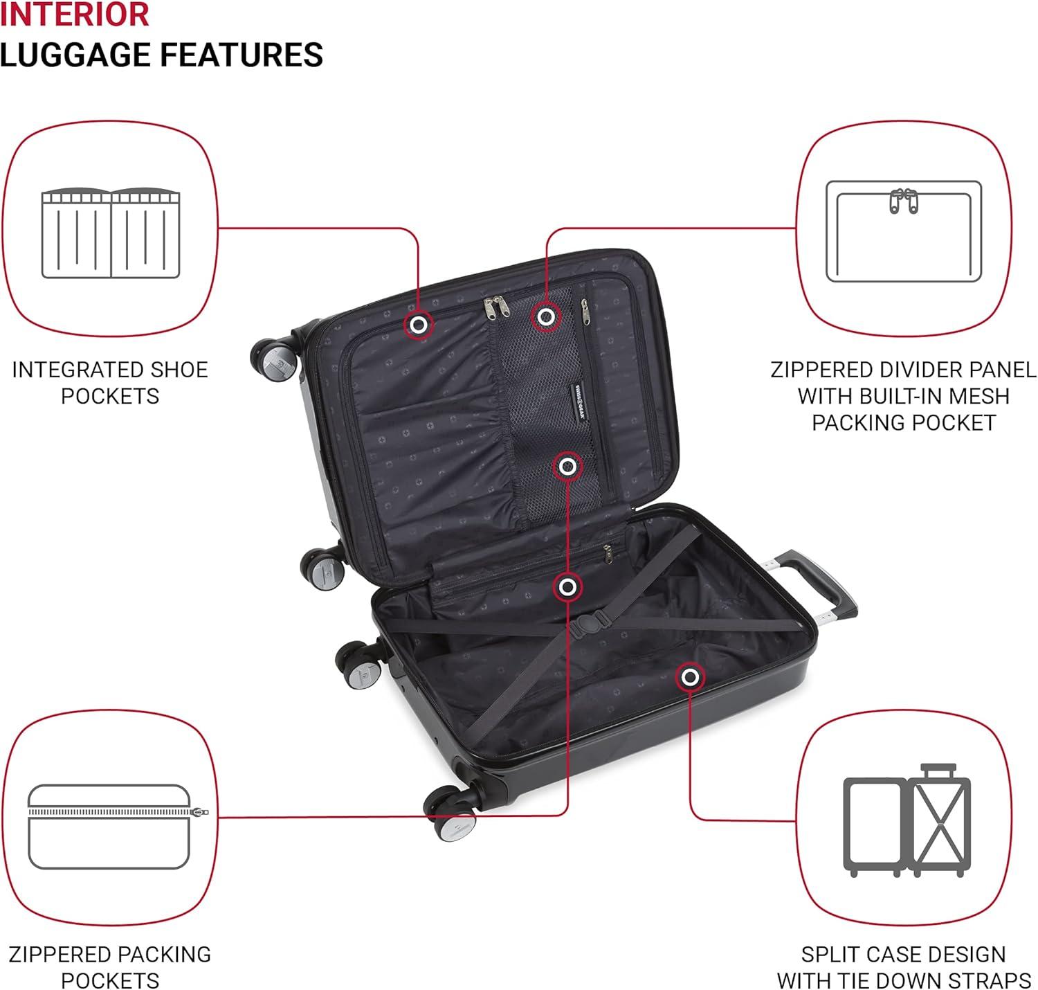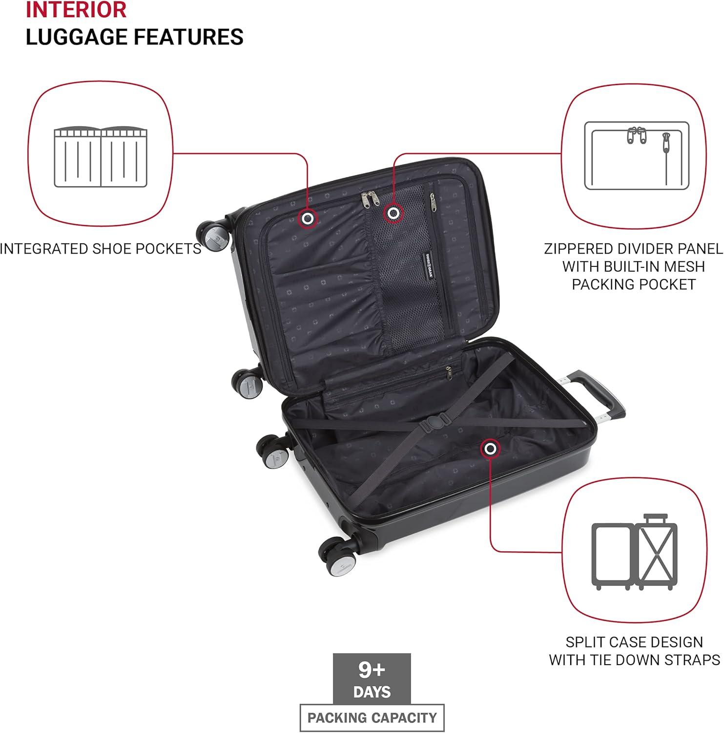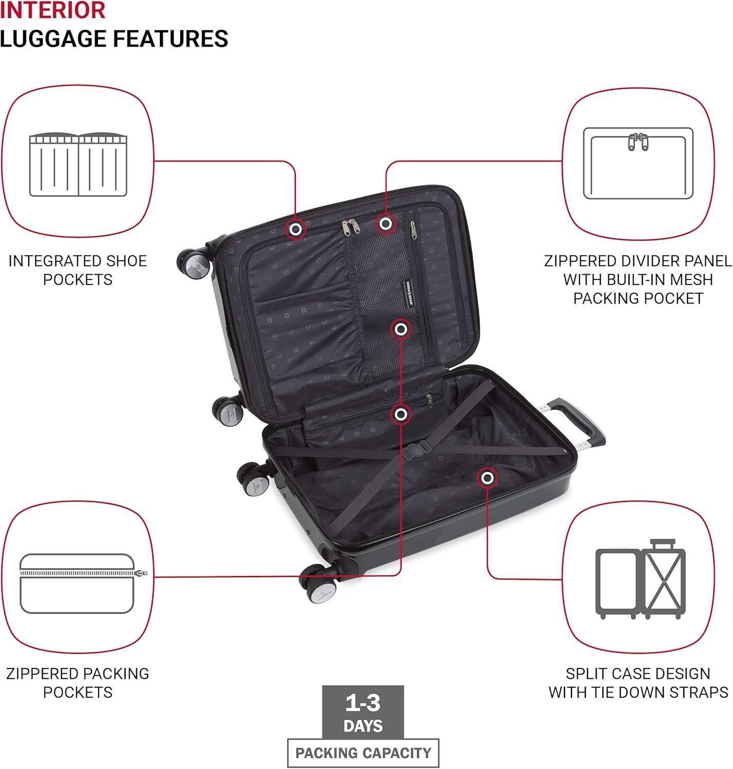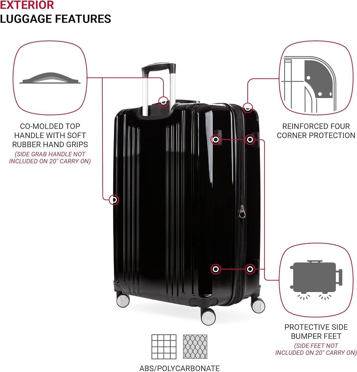 Made of a rugged yet lightweight ABS/Polycarbonate combination and featuring front corner bumpers for added durability, this sharp looking luggage has what it takes to endure the rigors of today’s travel. The SwissGear 7786 20” Expandable Carry On Hardside Spinner Luggage is constructed using a naturally organized split-case design that is kept closed using a heavy-duty, self-repairing main zipper and features eight 360-degree, multi-directional spinner wheels and an aluminum, push-button locking retractable handle for maximum lightweight maneuverability through the airport. Inside the bag, you’ll find a fully lined, expandable main compartment for when you need more packing space. Other features include twin stretch-pockets ideal for a pair of shoes, multiple zippered organization pockets, a zippered divider panel and a clothing tie-down strap to keep everything in place when on the go.