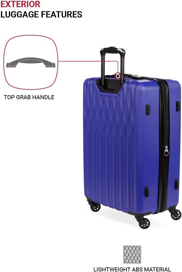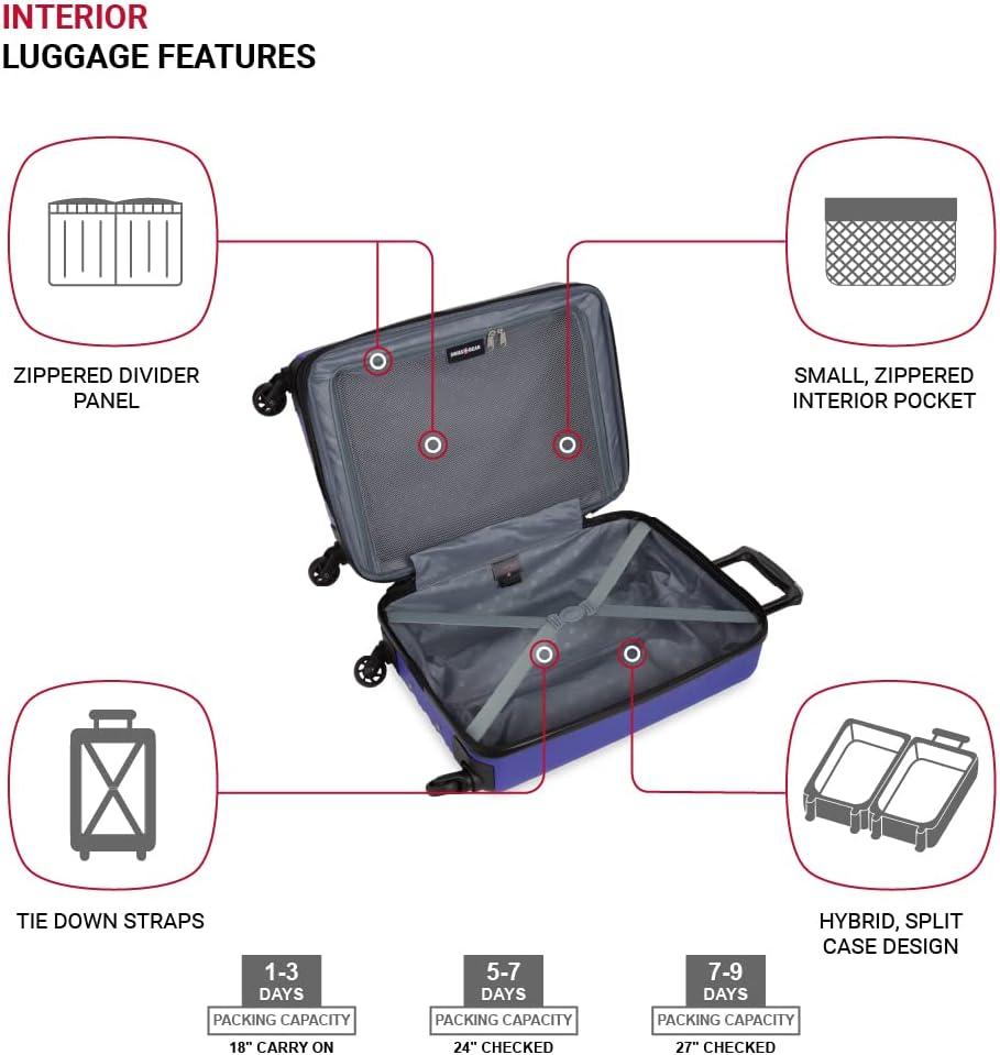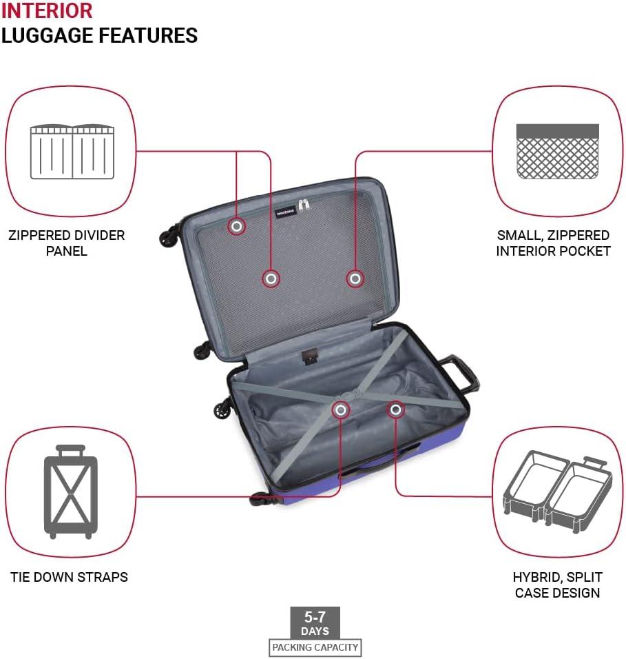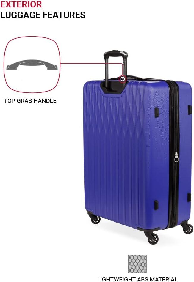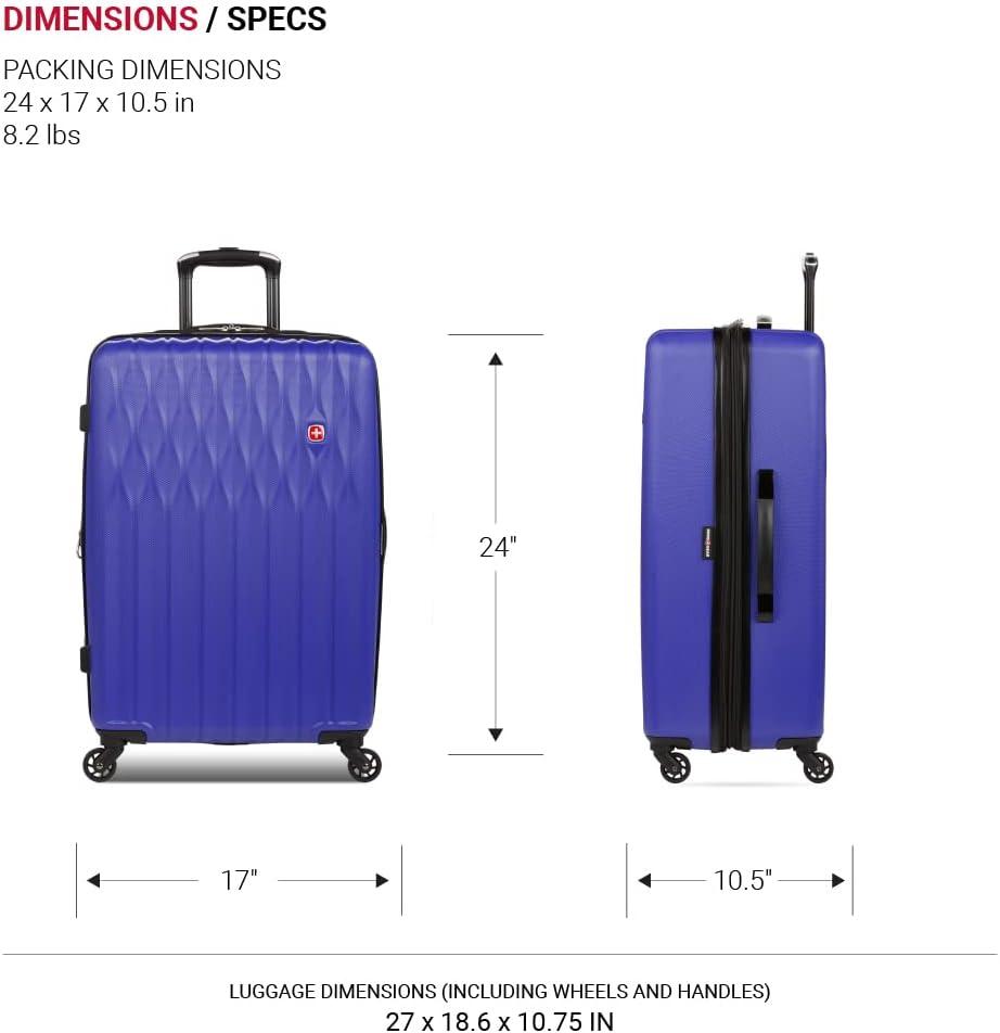 SwissGear 8018 Hardside Expandable Luggage with Spinner Wheels is the perfect carry-on luggage for your next trip. This 20-inch suitcase is made of durable ABS and includes co-molded lift handle(s) with soft rubber hand grips for easy maneuverability. The split-case design expands 2″ for additional packing space and a variety of internal pockets keep you organized. The eight 360-degree multi-directional spinner wheels and a premium, push-button steel locking telescopic handle make it easy to navigate through the airport. With outside dimensions of 22.75 x 15 x 9.5 inches including wheels and handles, this suitcase offers 20 x 14 x 9 inches of packing space. This hardside luggage is perfect for those who need a lightweight and durable suitcase for their travels. The hardshell exterior is designed to protect your belongings from the wear and tear of travel, while the spinner wheels make it easy to move around. The telescopic handle is designed to be comfortable and easy to use, and the internal pockets help you stay organized. Plus, this suitcase comes with a 10 year warranty against defects in materials and workmanship.