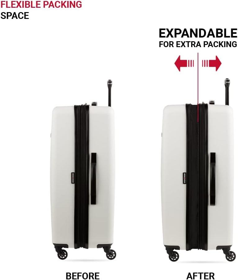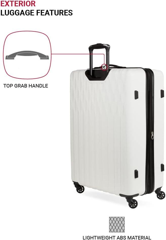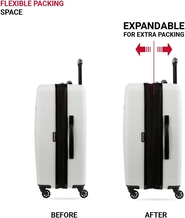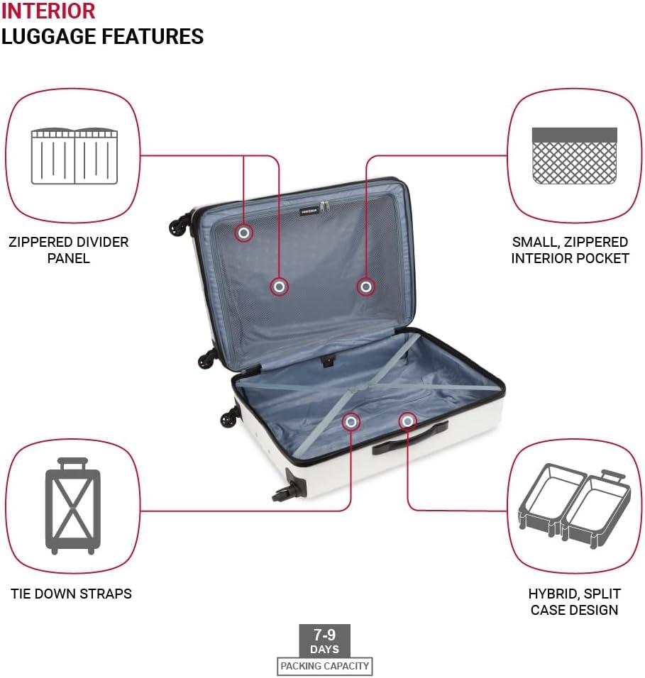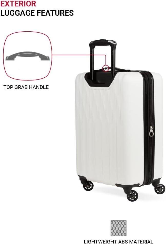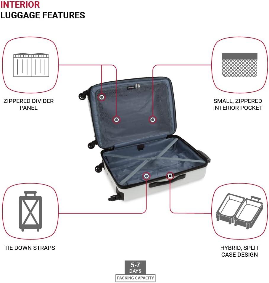 SwissGear 8018 Hardside Expandable Luggage with Spinner Wheels is the perfect carry-on luggage for your next trip. This 20-inch suitcase is made of durable ABS and includes co-molded lift handle(s) with soft rubber hand grips for easy maneuverability. The split-case design expands 2″ for additional packing space and a variety of internal pockets keep you organized. The eight 360-degree multi-directional spinner wheels and a premium, push-button steel locking telescopic handle make it easy to navigate through the airport. With outside dimensions of 22.75 x 15 x 9.5 inches including wheels and handles, this suitcase offers 20 x 14 x 9 inches of packing space. This hardside luggage is perfect for those who need a lightweight and durable suitcase for their travels. The hardshell exterior is designed to protect your belongings from the wear and tear of travel, while the spinner wheels make it easy to move around. The telescopic handle is designed to be comfortable and easy to use, and the internal pockets help you stay organized. Plus, this suitcase comes with a 10 year warranty against defects in materials and workmanship.
