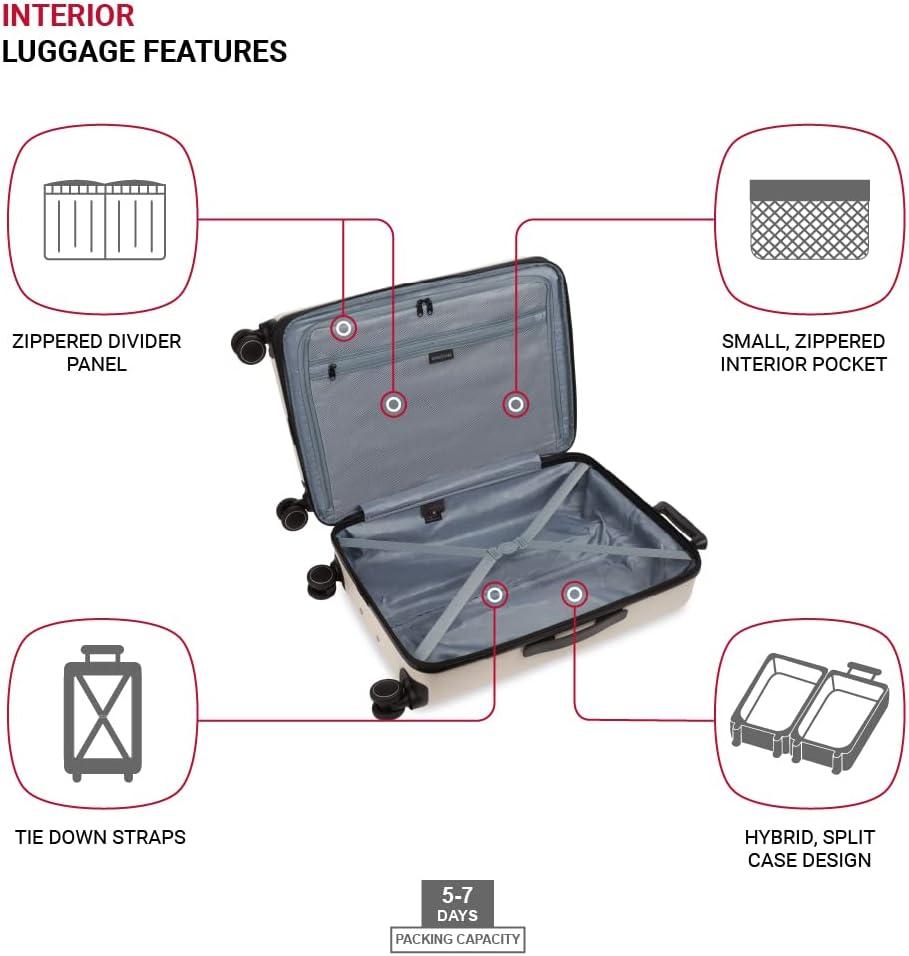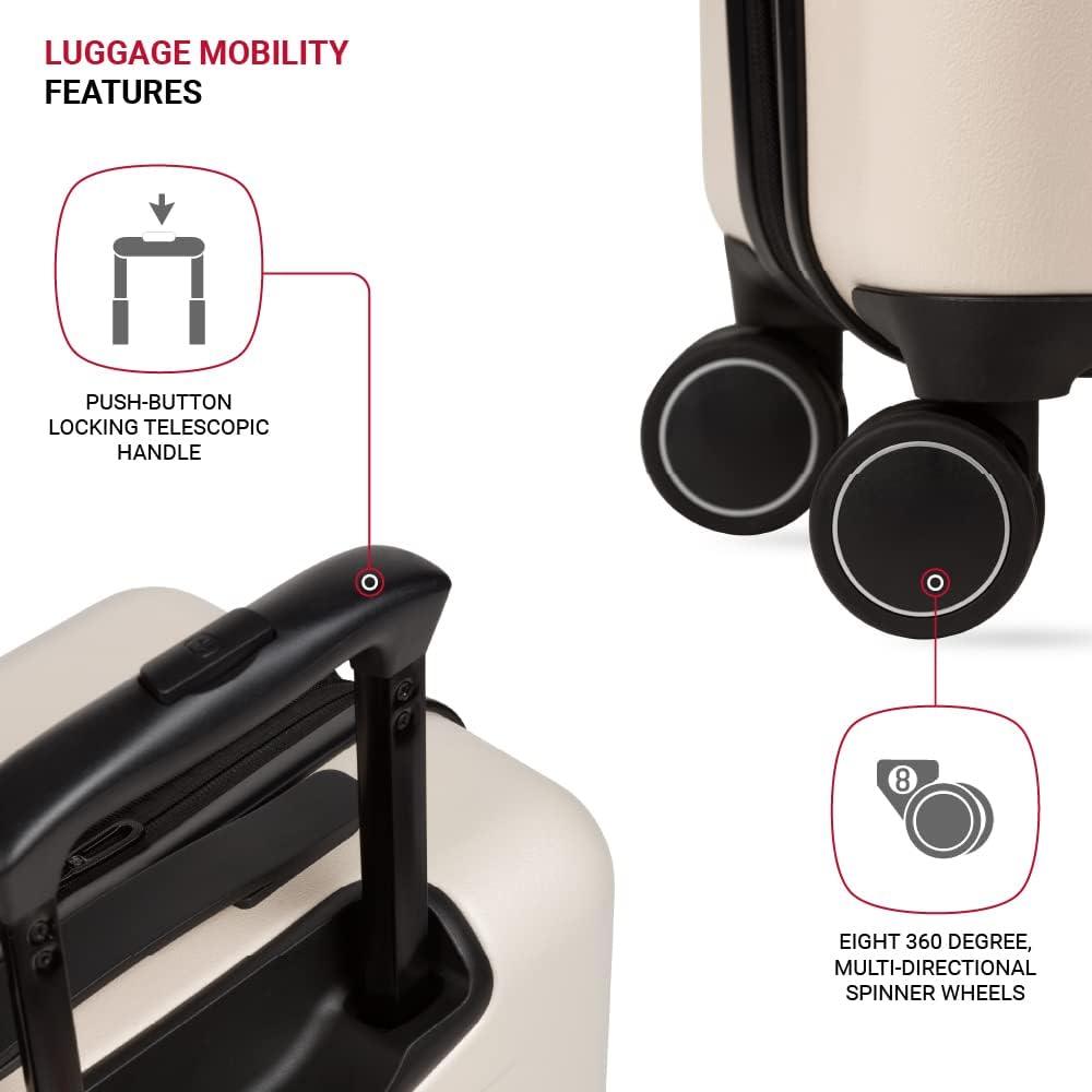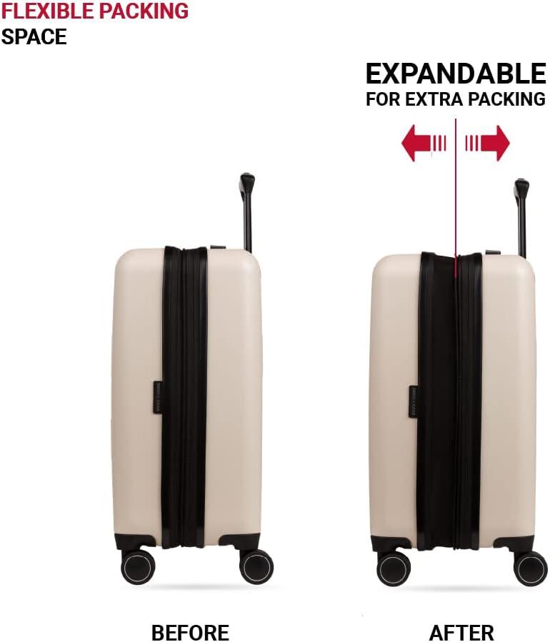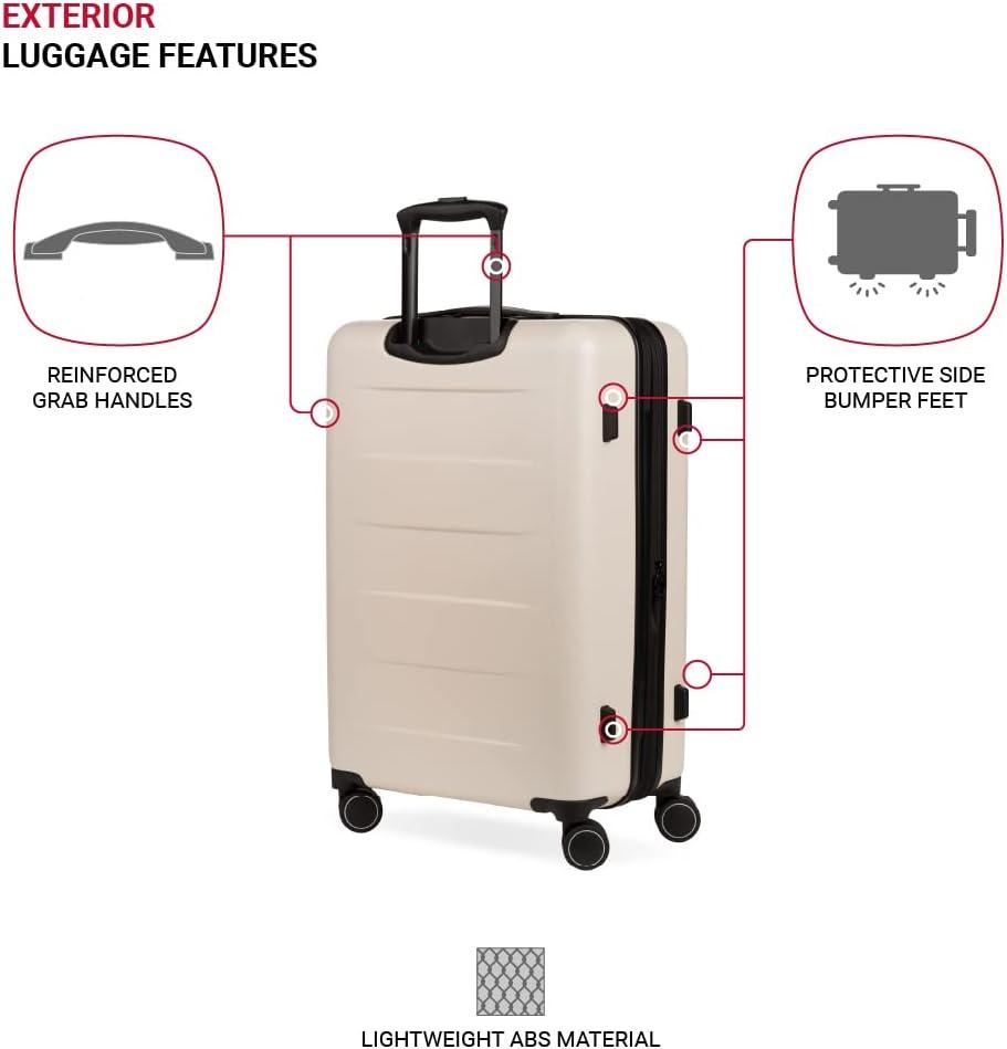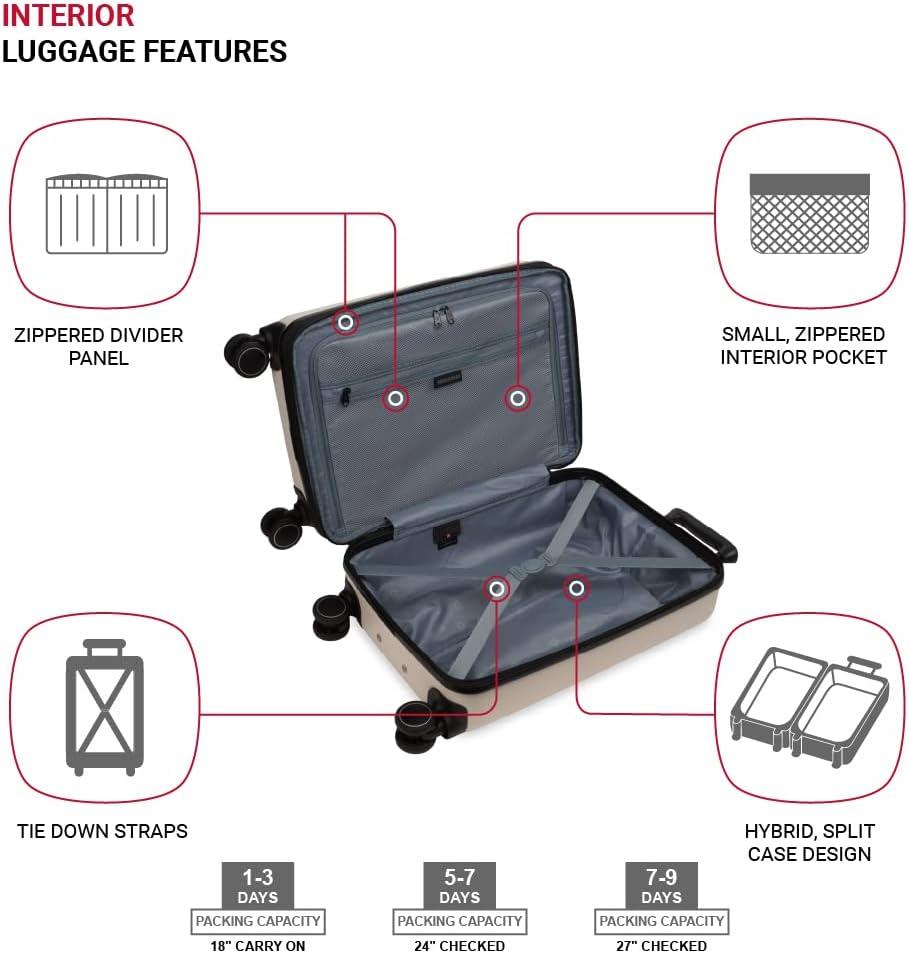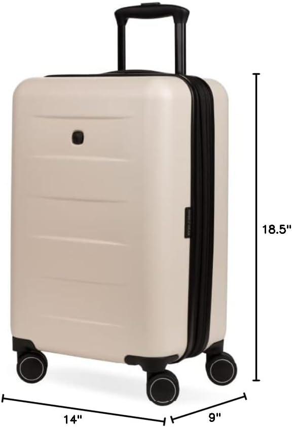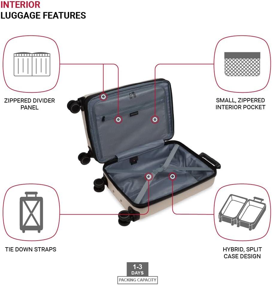 SwissGear 8020 Hardside Expandable Luggage with Spinner Wheels is the perfect carry-on luggage for your next trip. This 18-inch suitcase is made of durable ABS and includes co-molded lift handle(s) with soft rubber hand grips for easy maneuverability. The split-case design expands 2″ for additional packing space and a variety of internal pockets keep you organized. The eight 360-degree multi-directional spinner wheels and a premium, push-button steel locking telescopic handle make it easy to navigate through the airport. With outside dimensions of 21.5 x 15 x 9.5 inches including wheels and handles, this suitcase offers 18.5 x 14 x 9 inches of packing space. This hardside luggage is perfect for those who need a lightweight and durable suitcase for their travels. The hardshell exterior is designed to protect your belongings from the wear and tear of travel, while the spinner wheels and telescopic handle make it easy to move around. Plus, this suitcase comes with a 10 year warranty against defects in materials and workmanship.