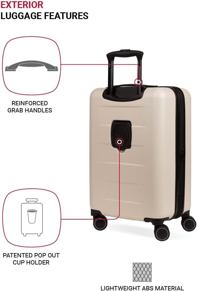 Expandable Carry-On Luggage: With 18.5 x 14 x 9 inches of packing space and a convenient fold-out cup holder, this rolling suitcase is the perfect size for any trip; At only 21.5 x 15 x 9.5 inches overall, it fits all your travel essentials without unnecessary bulk