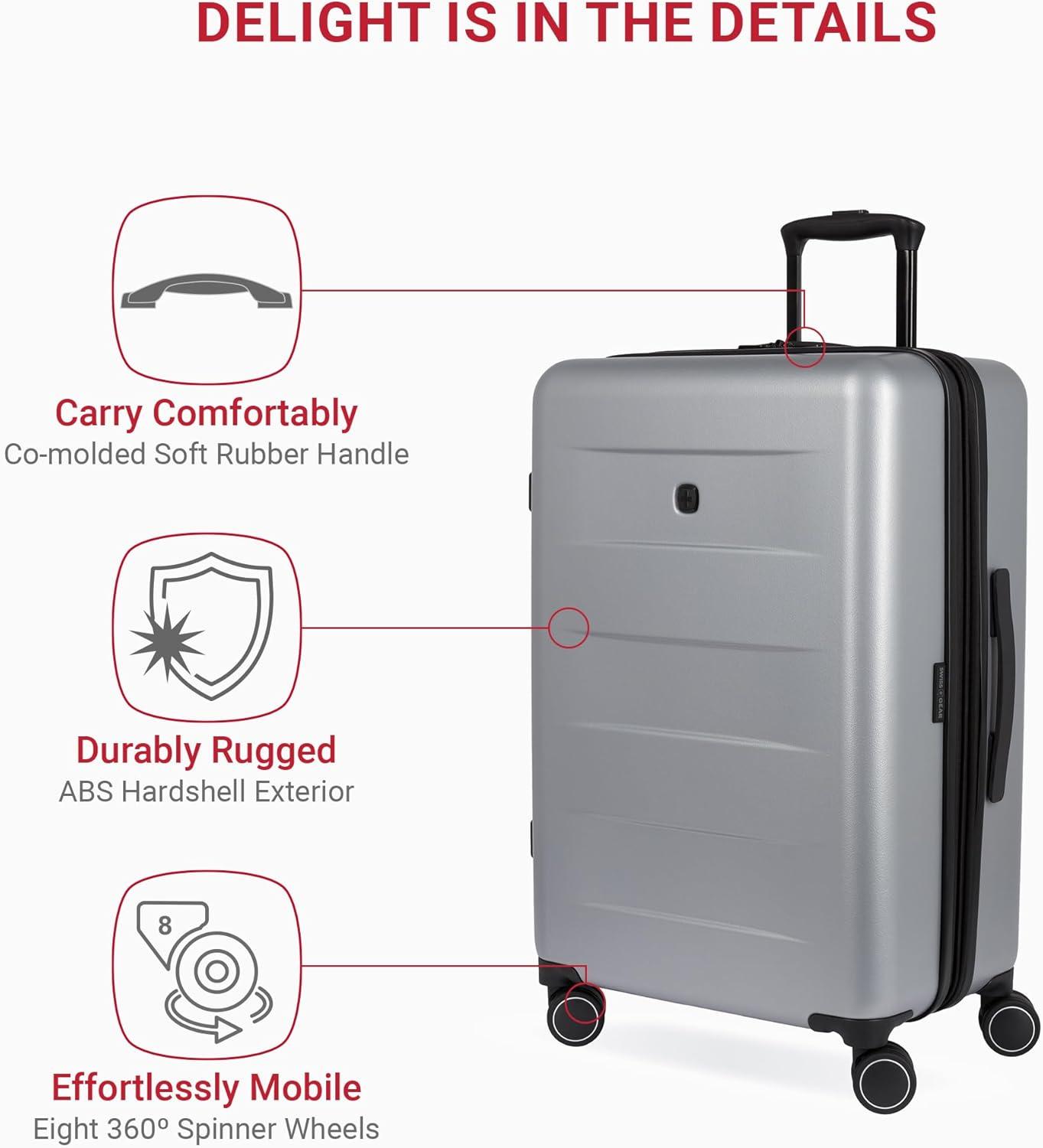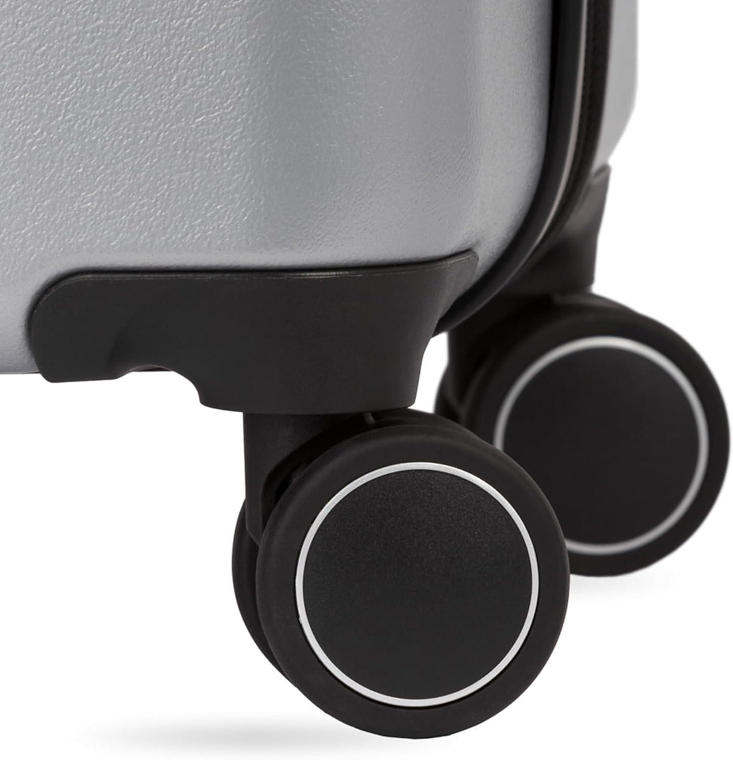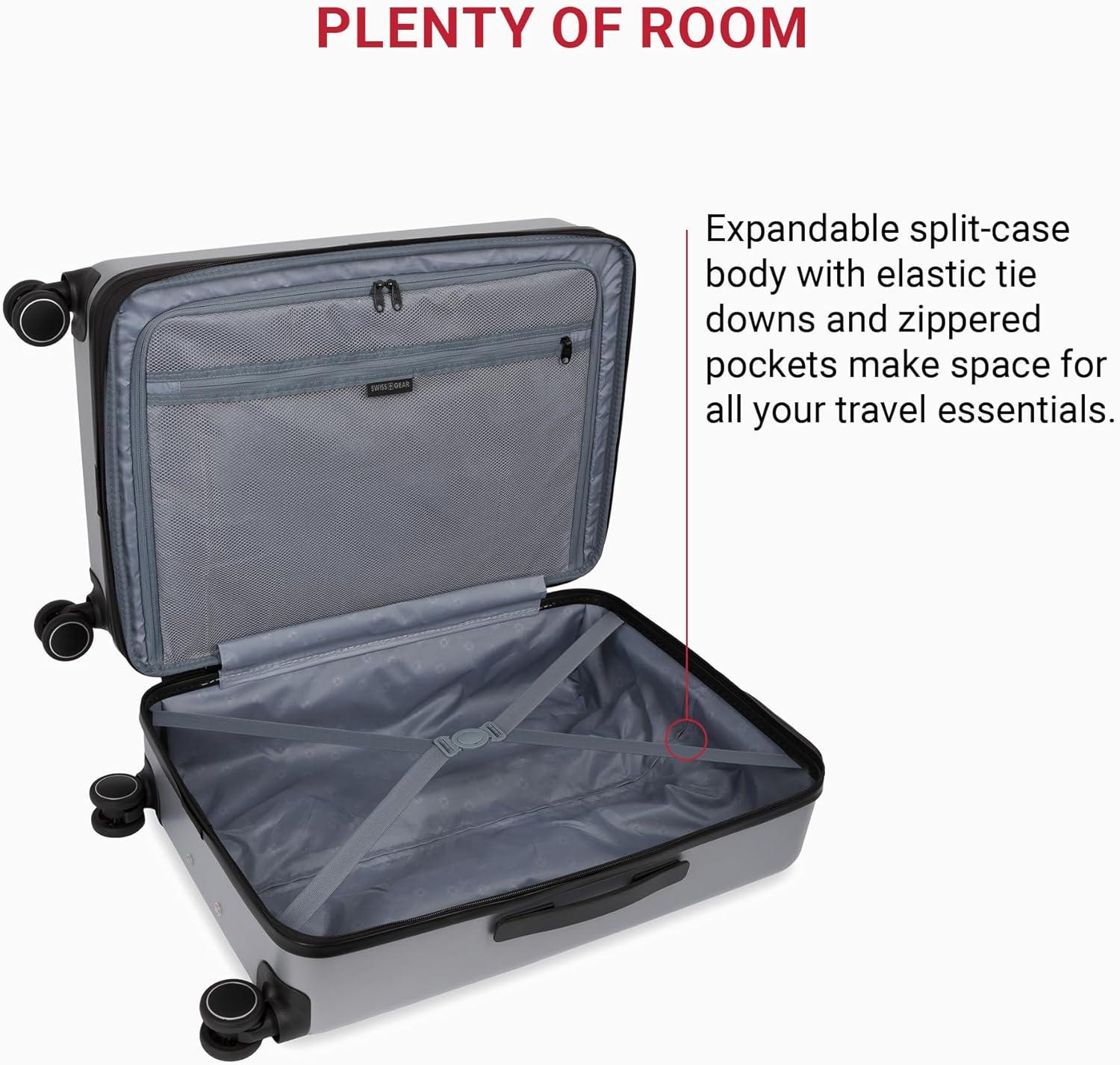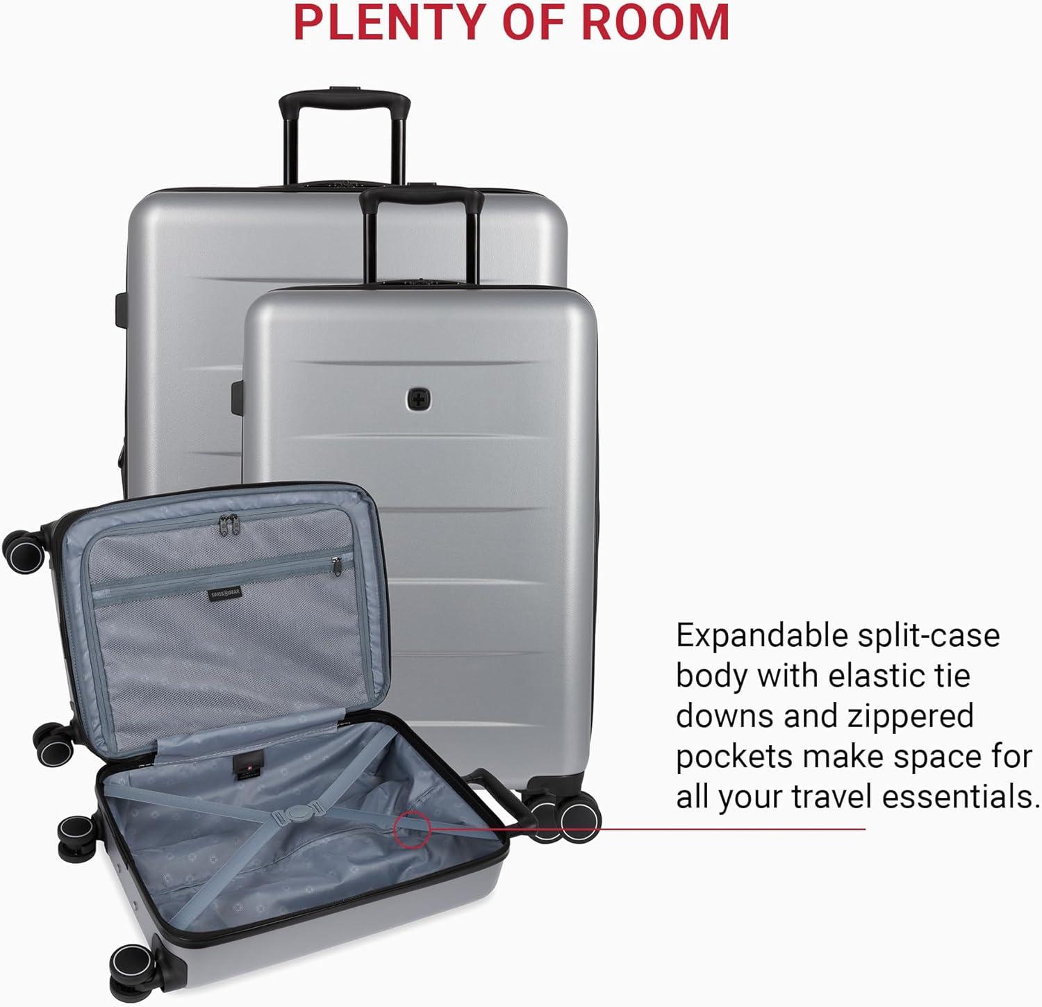 SwissGear 8020 Hardside Expandable Luggage with Spinner Wheels is the perfect carry-on luggage for your next trip. This 18-inch suitcase is made of durable ABS and includes co-molded lift handle(s) with soft rubber hand grips for easy maneuverability. The split-case design expands 2″ for additional packing space and a variety of internal pockets keep you organized. The eight 360-degree multi-directional spinner wheels and a premium, push-button steel locking telescopic handle make it easy to navigate through the airport. With outside dimensions of 21.5 x 15 x 9.5 inches including wheels and handles, this suitcase offers 18.5 x 14 x 9 inches of packing space. This hardside luggage is perfect for those who need a lightweight and durable suitcase for their travels. The hardshell exterior is designed to protect your belongings from the wear and tear of travel, while the spinner wheels and telescopic handle make it easy to move around. Plus, this suitcase comes with a 10 year warranty against defects in materials and workmanship.