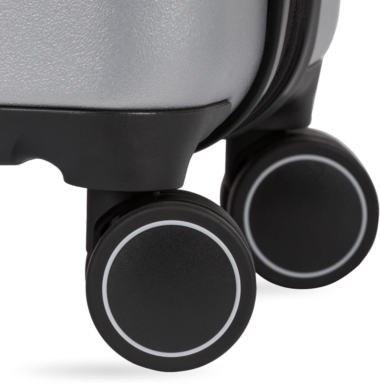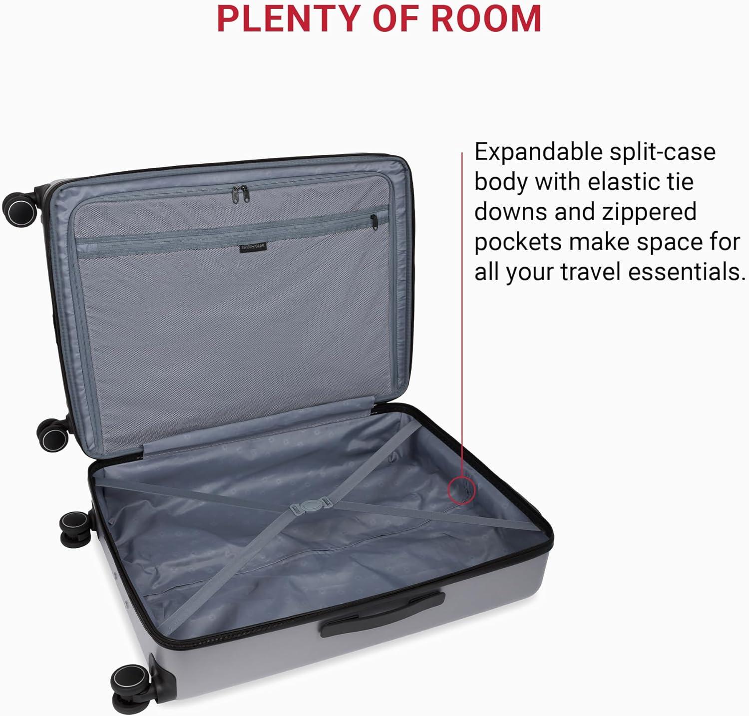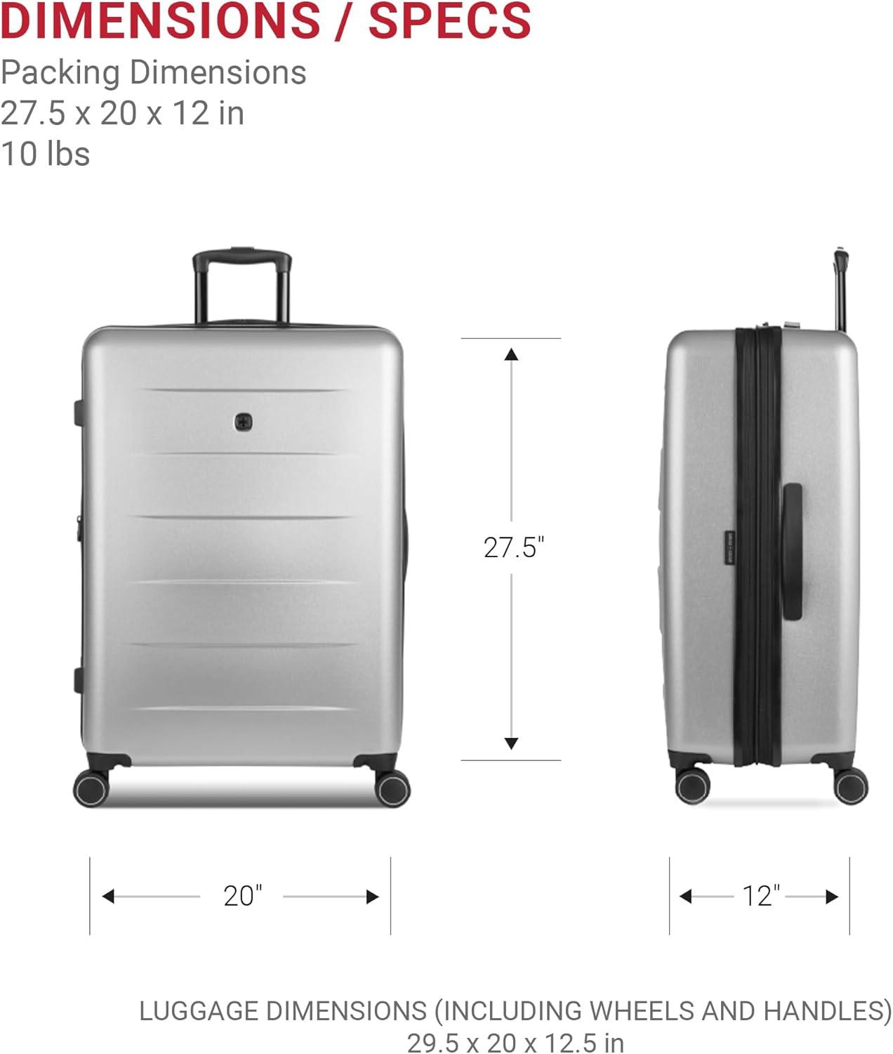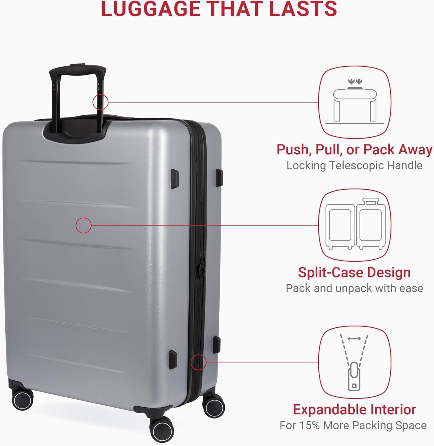 SwissGear 8020 Hardside Expandable Luggage with Spinner Wheels is the perfect carry-on luggage for your next trip. This 18-inch suitcase is made of durable ABS and includes co-molded lift handle(s) with soft rubber hand grips for easy maneuverability. The split-case design expands 2″ for additional packing space and a variety of internal pockets keep you organized. The eight 360-degree multi-directional spinner wheels and a premium, push-button steel locking telescopic handle make it easy to navigate through the airport. With outside dimensions of 21.5 x 15 x 9.5 inches including wheels and handles, this suitcase offers 18.5 x 14 x 9 inches of packing space. This hardside luggage is perfect for those who need a lightweight and durable suitcase for their travels. The hardshell exterior is designed to protect your belongings from the wear and tear of travel, while the spinner wheels and telescopic handle make it easy to move around. Plus, this suitcase comes with a 10 year warranty against defects in materials and workmanship.