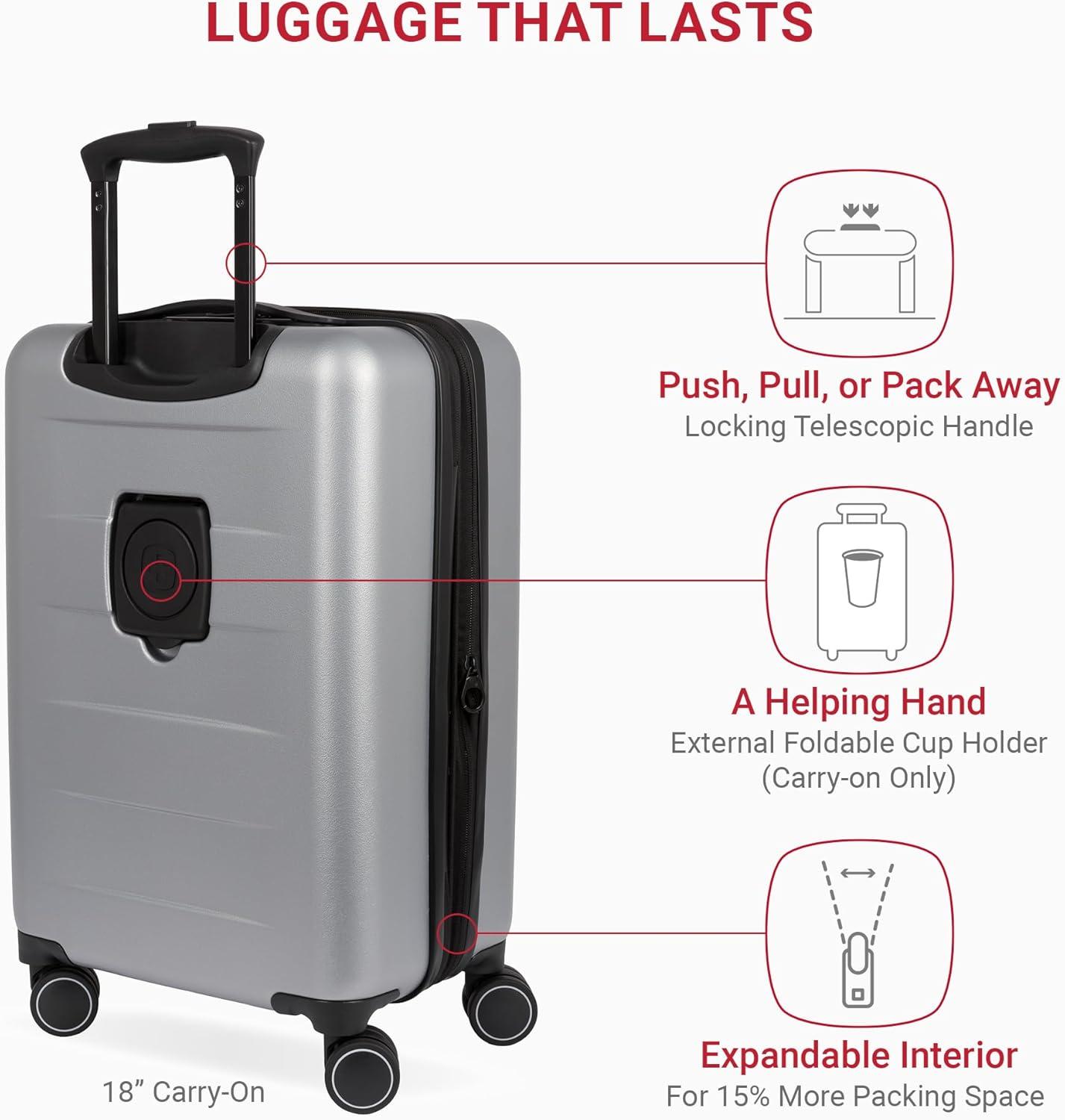 SwissGear 8020 Eclipse Hardside Expandable Luggage with Spinner Wheels, Powder Blue, Carry-On 18-Inch(Ultimate Grey)