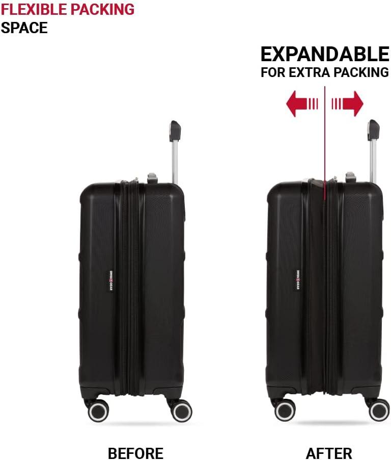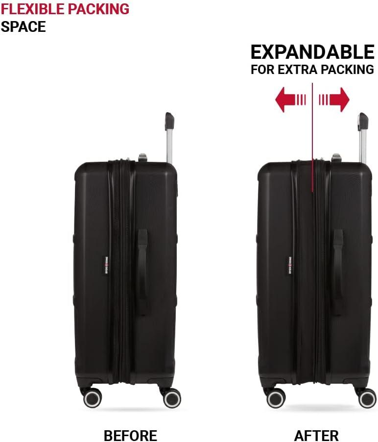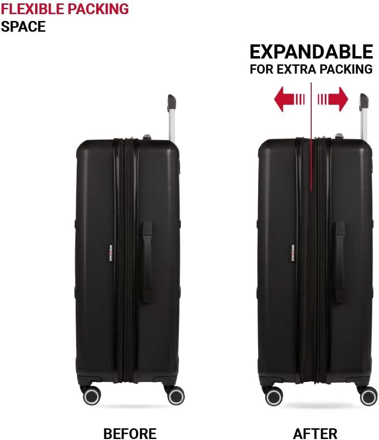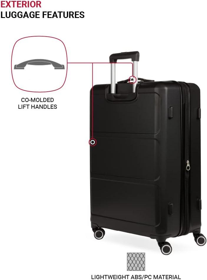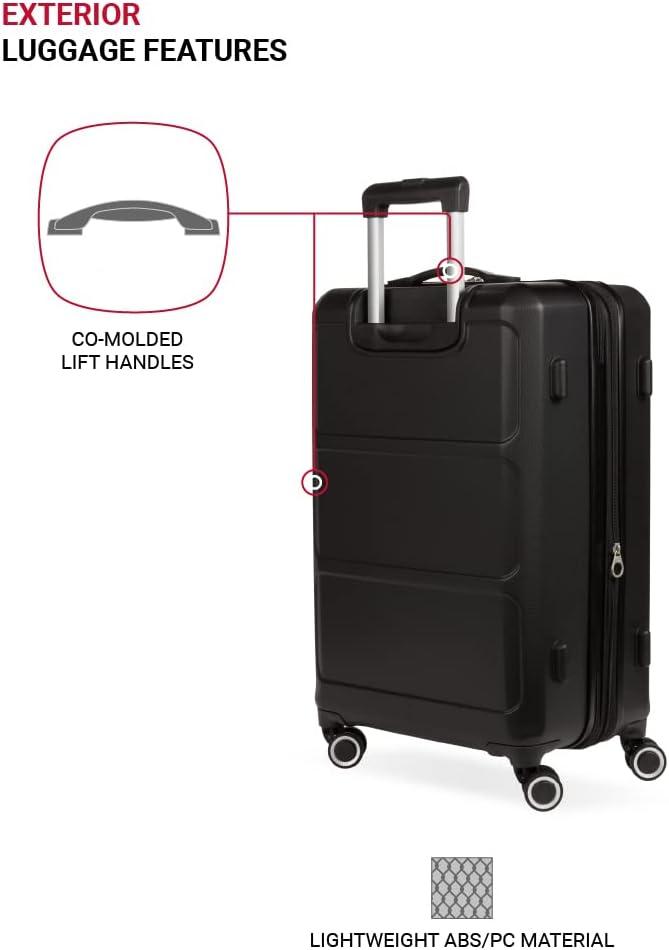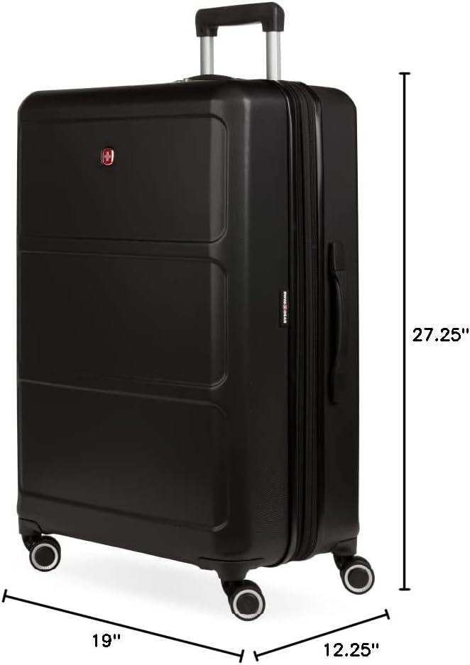 SwissGear 8090 Hardside Expandable Luggage with Spinner Wheels is the perfect bag for your next trip. This 28-inch suitcase is made of durable ABS and includes co-molded lift handle(s) with soft rubber hand grips for easy maneuverability. The split-case design expands 2″ for additional packing space and a variety of internal pockets keep you organized. The eight 360-degree multi-directional spinner wheels and a premium, push-button steel locking telescopic handle make it easy to navigate through the airport. With outside dimensions of 30.5 x 21 x 10 inches including wheels and handles, this suitcase offers 28 x 20.75 x 9 inches of packing space. This hardside luggage is perfect for those who need a lightweight and durable suitcase for their travels. The hardshell exterior is designed to protect your belongings from the wear and tear of travel, while the spinner wheels make it easy to move around. The telescopic handle is designed to be comfortable and easy to use, and the internal pockets help you stay organized. Plus, this suitcase comes with a 10 year warranty against defects in materials and workmanship.