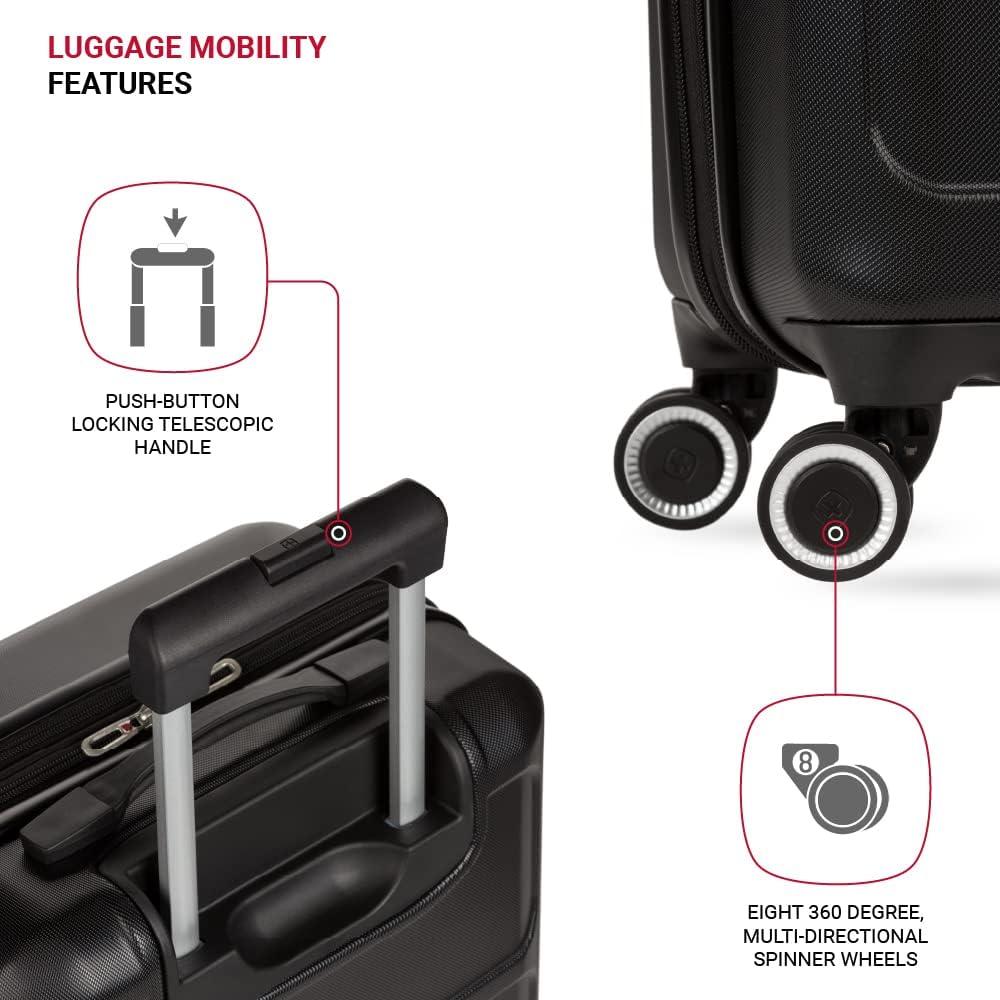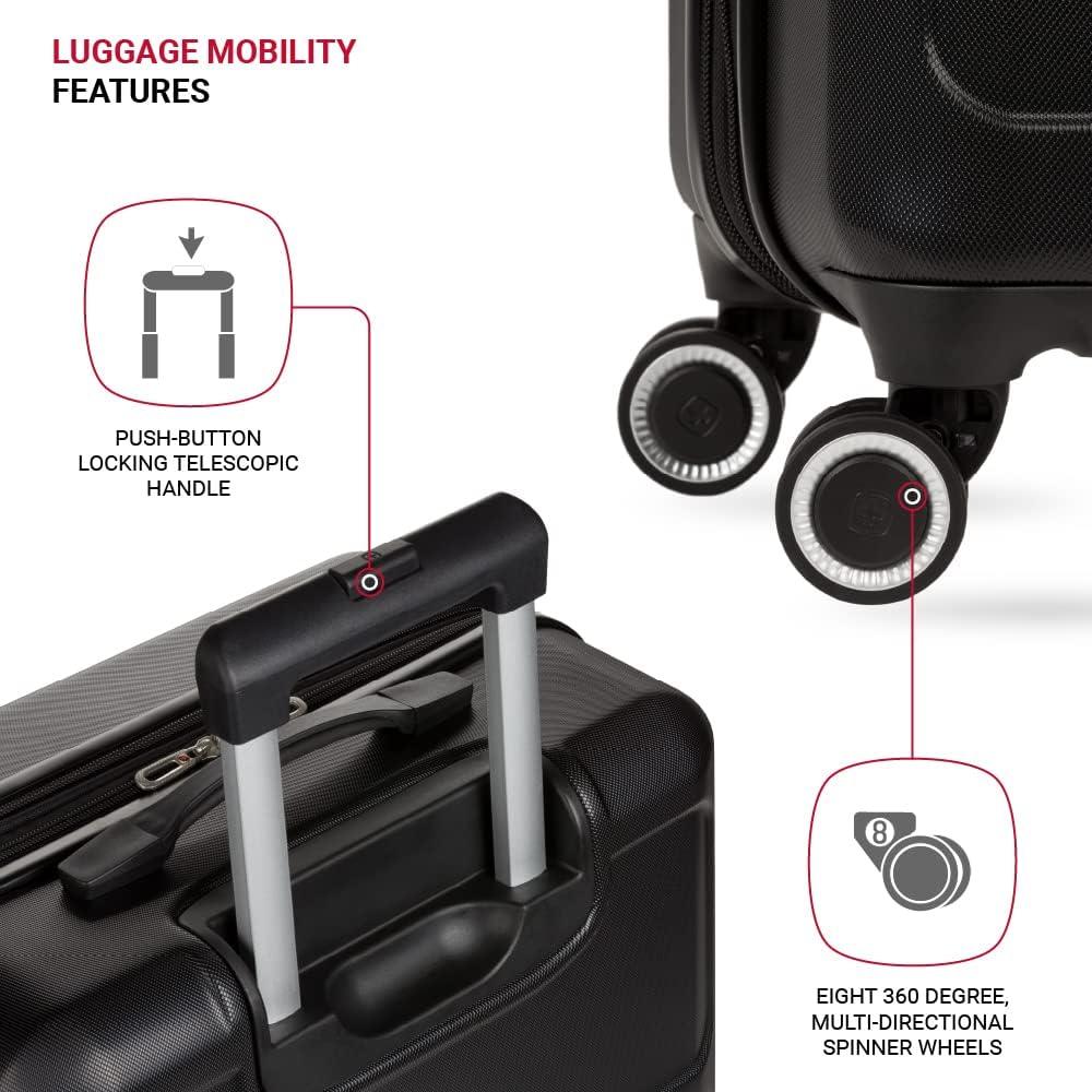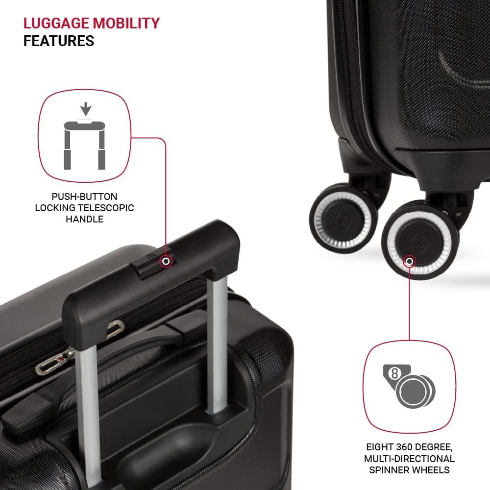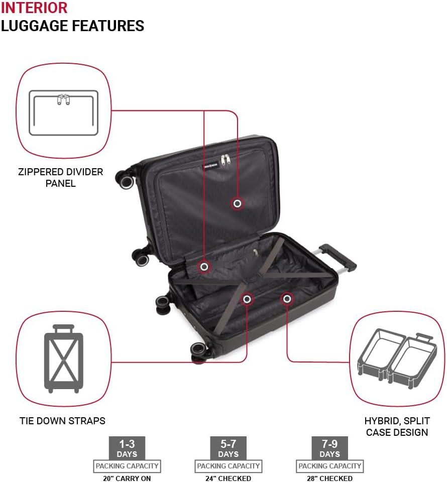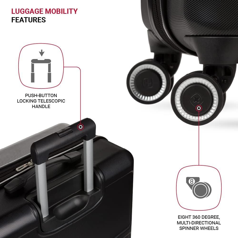 SwissGear 8090 Hardside Expandable Luggage with Spinner Wheels is the perfect bag for your next trip. This 28-inch suitcase is made of durable ABS and includes co-molded lift handle(s) with soft rubber hand grips for easy maneuverability. The split-case design expands 2″ for additional packing space and a variety of internal pockets keep you organized. The eight 360-degree multi-directional spinner wheels and a premium, push-button steel locking telescopic handle make it easy to navigate through the airport. With outside dimensions of 30.5 x 21 x 10 inches including wheels and handles, this suitcase offers 28 x 20.75 x 9 inches of packing space. This hardside luggage is perfect for those who need a lightweight and durable suitcase for their travels. The hardshell exterior is designed to protect your belongings from the wear and tear of travel, while the spinner wheels make it easy to move around. The telescopic handle is designed to be comfortable and easy to use, and the internal pockets help you stay organized. Plus, this suitcase comes with a 10 year warranty against defects in materials and workmanship.