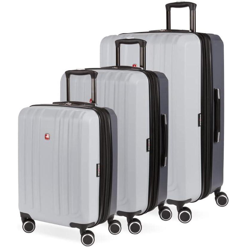 SwissGear Duet Hardside Expandable Luggage with Spinner Wheels, Light Blue/Navy, 3-Piece Set (19/24/28)(Light Grey/Ash Grey)