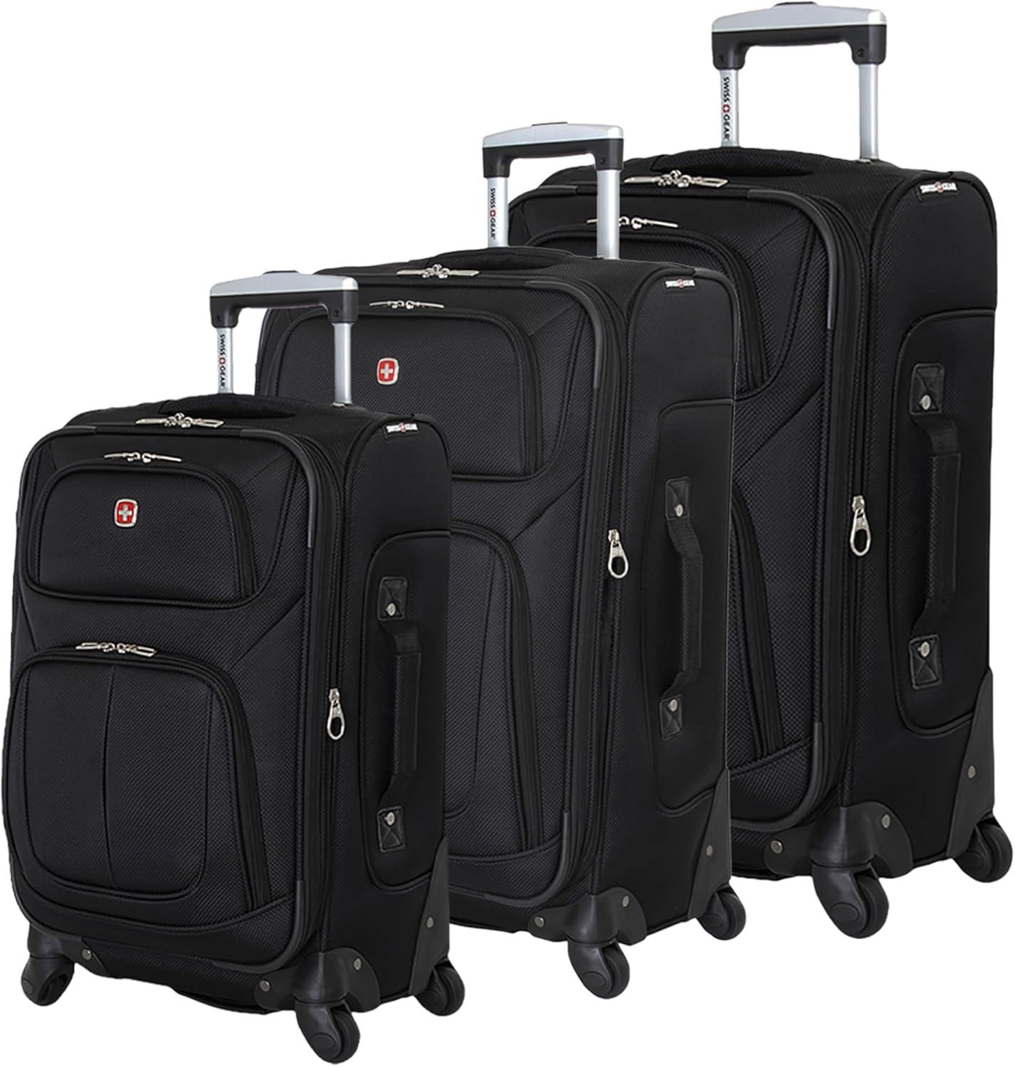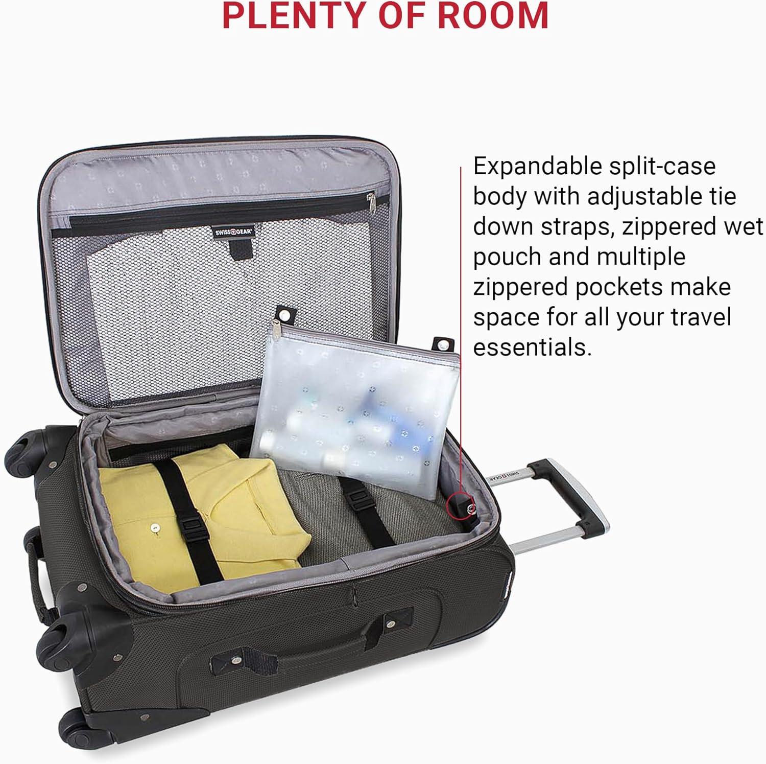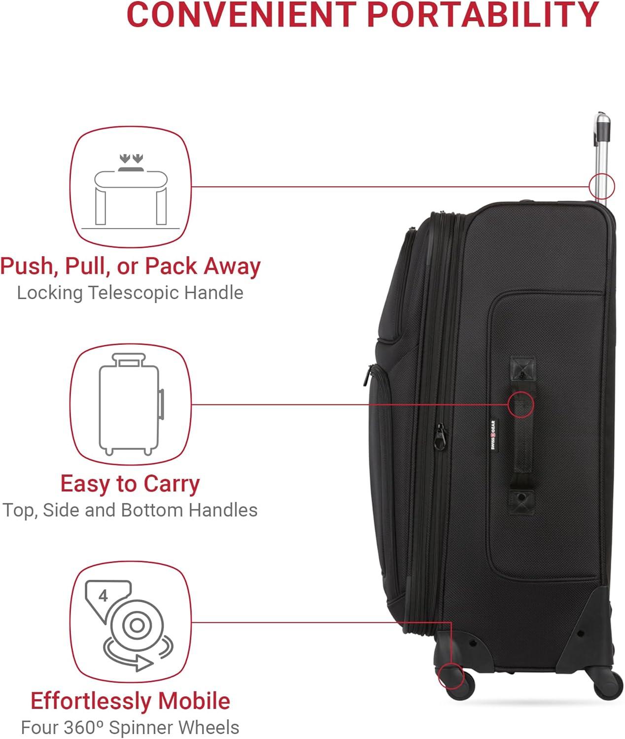 SwissGear Sion Softside Expandable Luggage, Burgundy, Checked-Medium 25-Inch(Black)