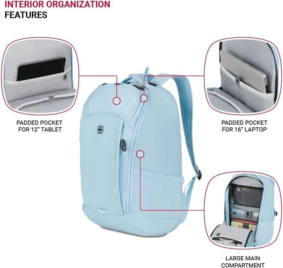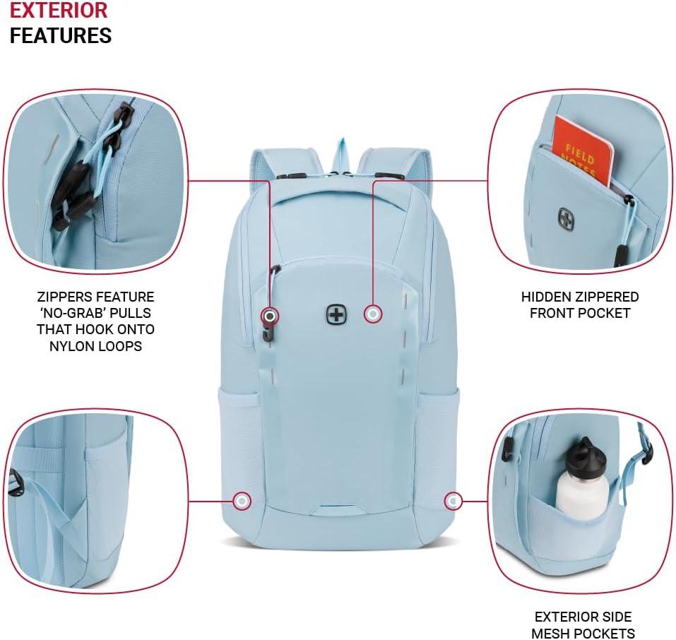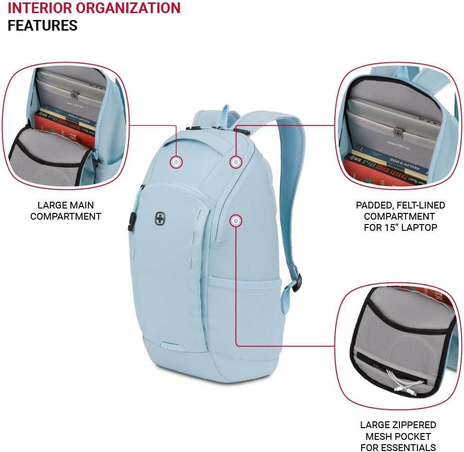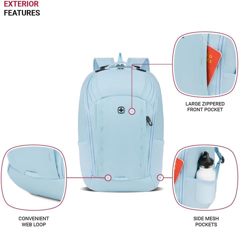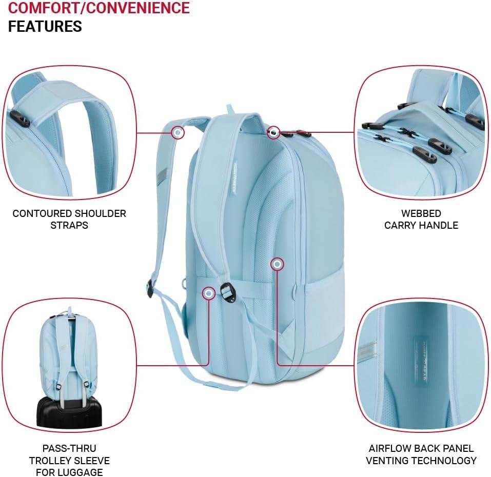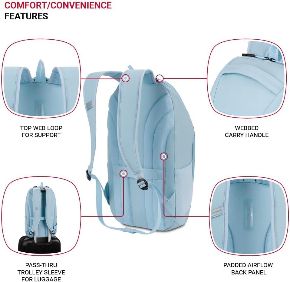 Pass-Thru Trolley Sleeve: A must-have travel backpack for men and women, this Swiss Gear backpack includes a rear sleeve that fits over luggage extension handles for easy and convenient movement through airports