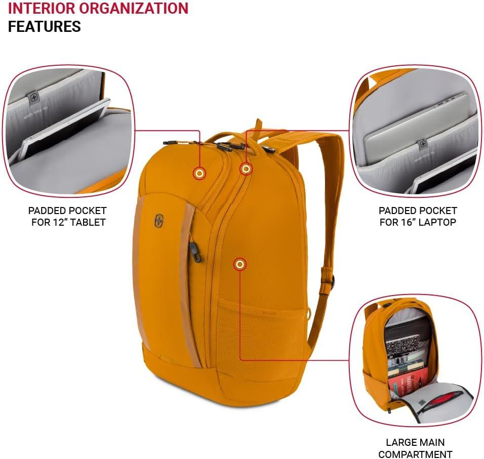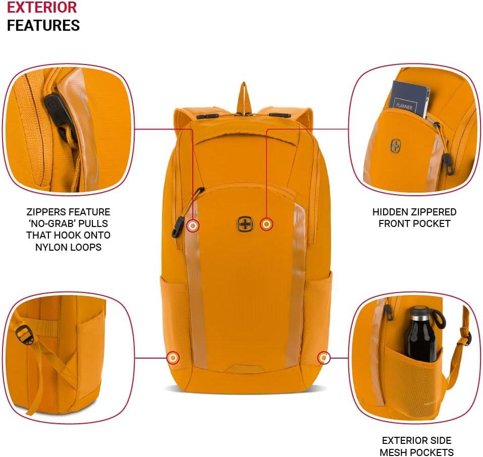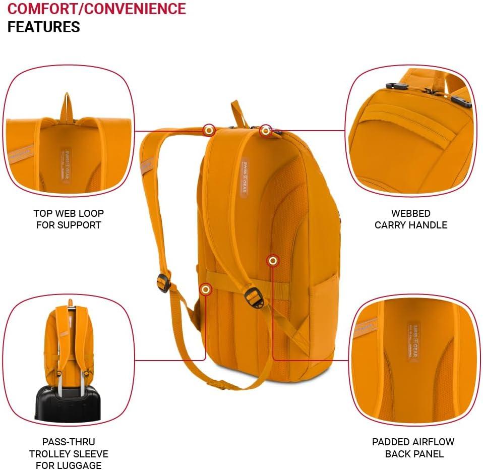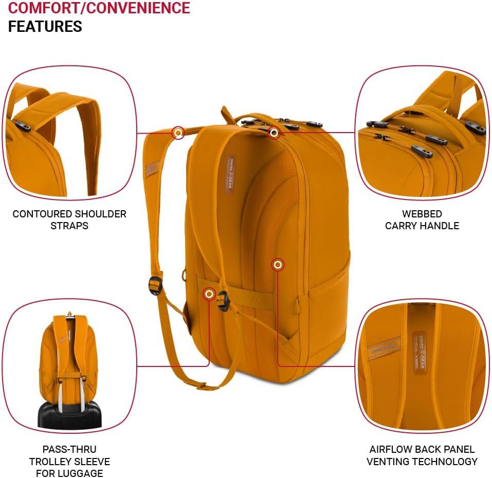 Pass-Thru Trolley Sleeve: A must-have travel backpack for men and women, this Swiss Gear backpack includes a rear sleeve that fits over luggage extension handles for easy and convenient movement through airports