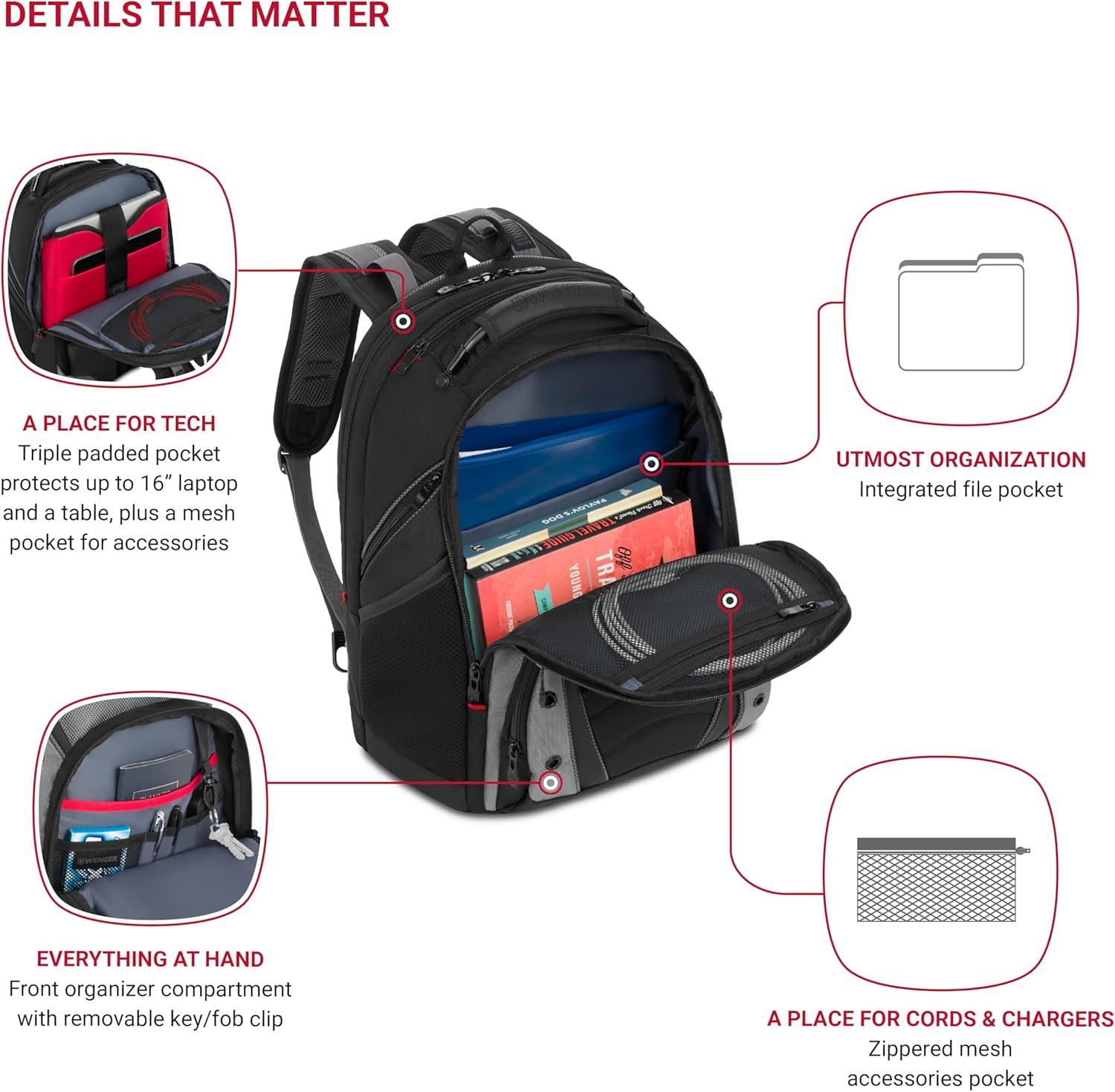 Wenger Ibex 17 inch Laptop Backpack, Men’s and Women’s Laptop Bag, Black/Gray/Blue(Wenger Synergy 16 Inch Laptop Backpack)