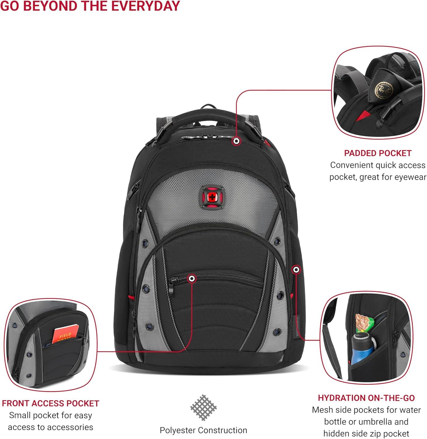 Wenger Ibex 17 inch Laptop Backpack, Men's and Women's Laptop Bag, Black/Gray/Blue(Wenger Synergy 16 Inch Laptop Backpack)