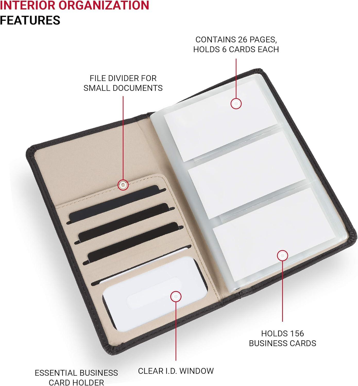 Feminine touches make the leah card case a great addition to the modern businesswoman's accessories. Clear ID window. Holds 156 cards. File divider for smaller items like envelopes and folded letters.